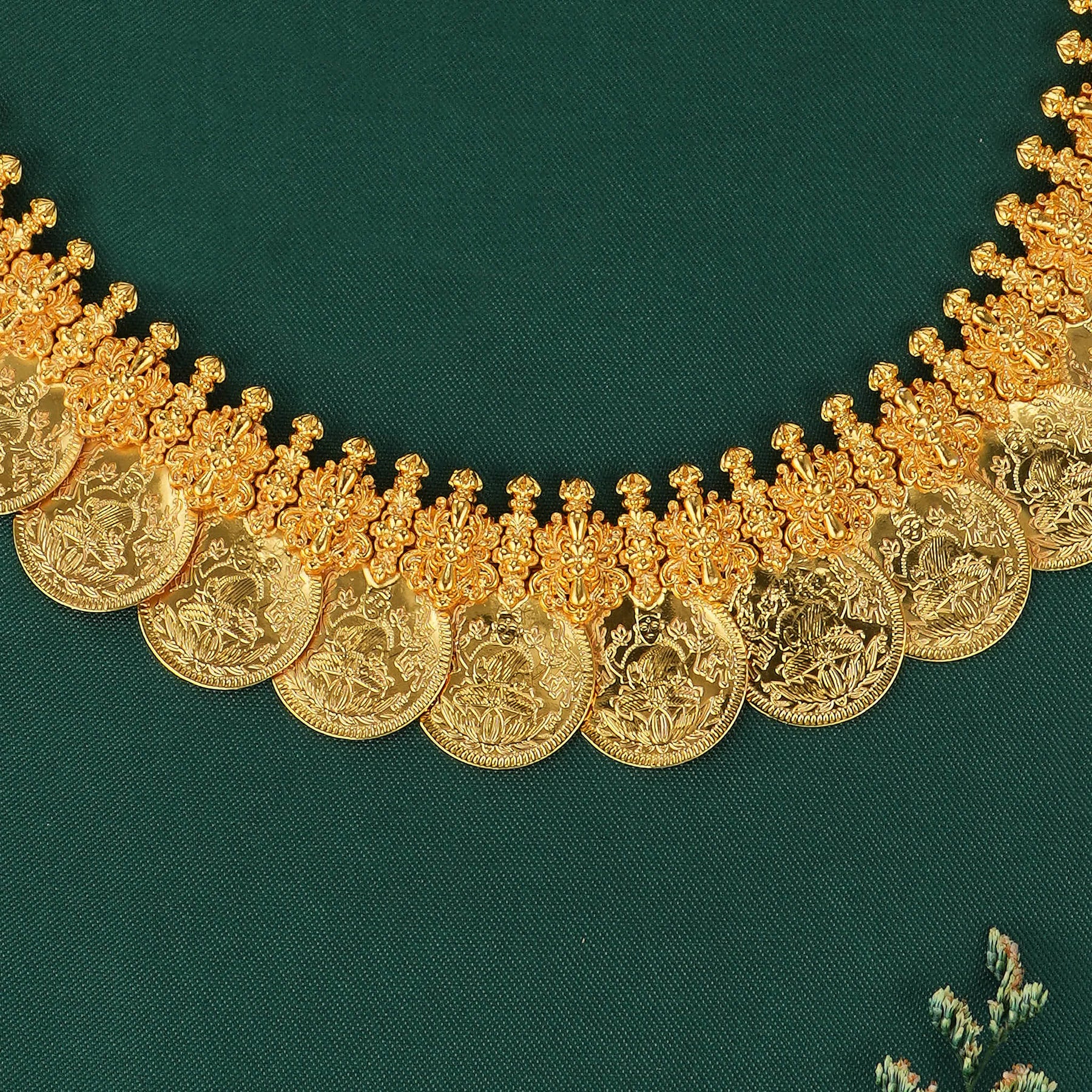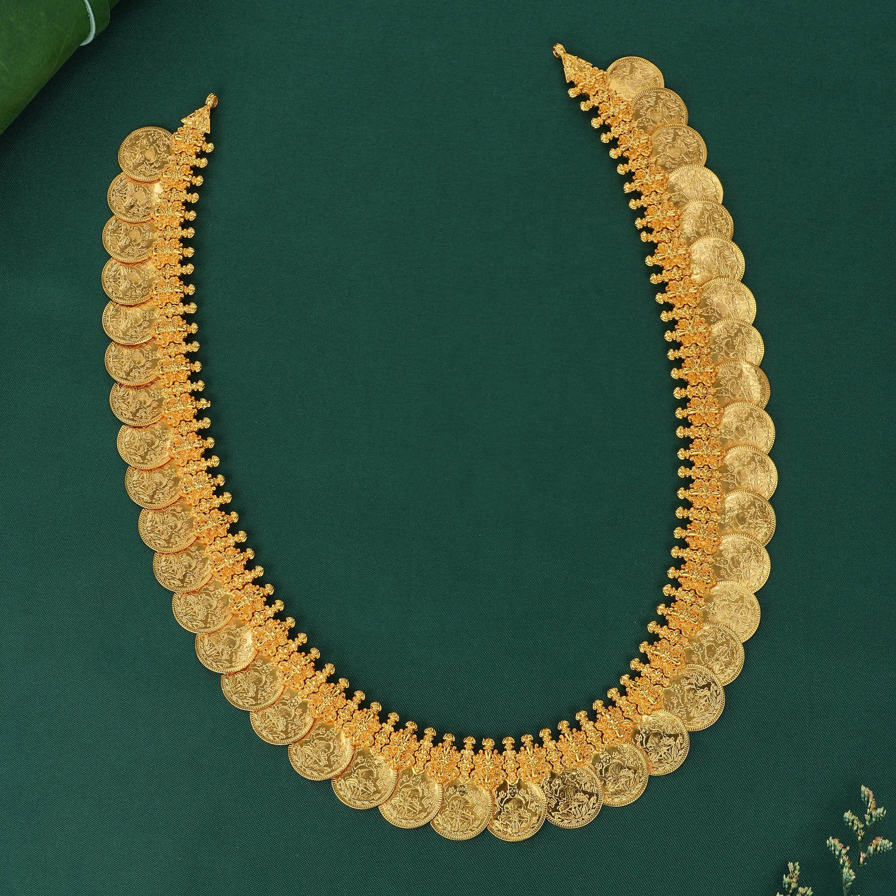 Crafted from 92.5 Silver and 24kt gold-plated Nagas Kaasumalai holds the traditional that indicates our culture and their spirit .. This kaasu Maalai holds the Lakshmi motifs with beautiful design that attract elegance.