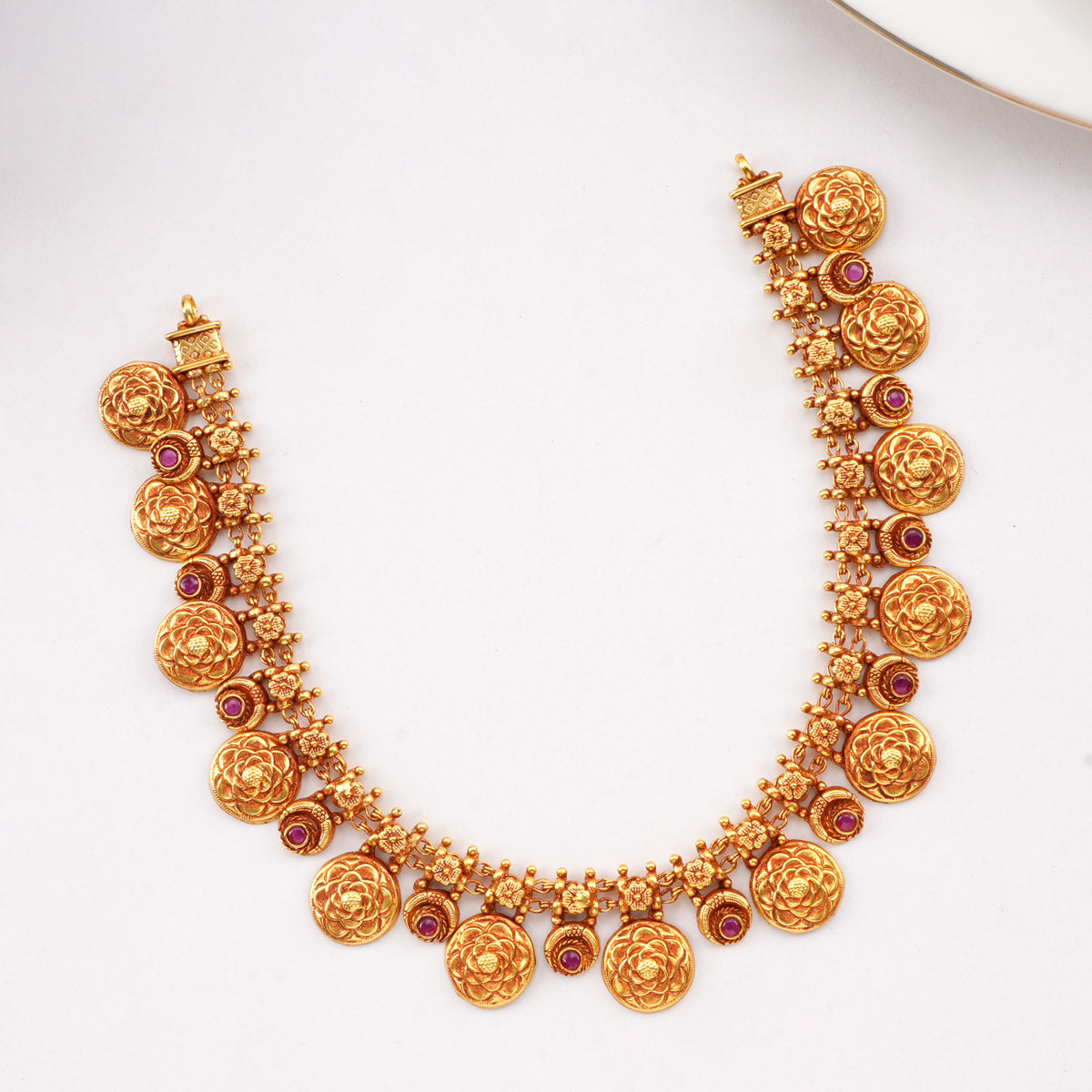 This necklace is crafted from 92.5 Sterling Silver and features 24-karat gold plating as well as semiprecious stones.