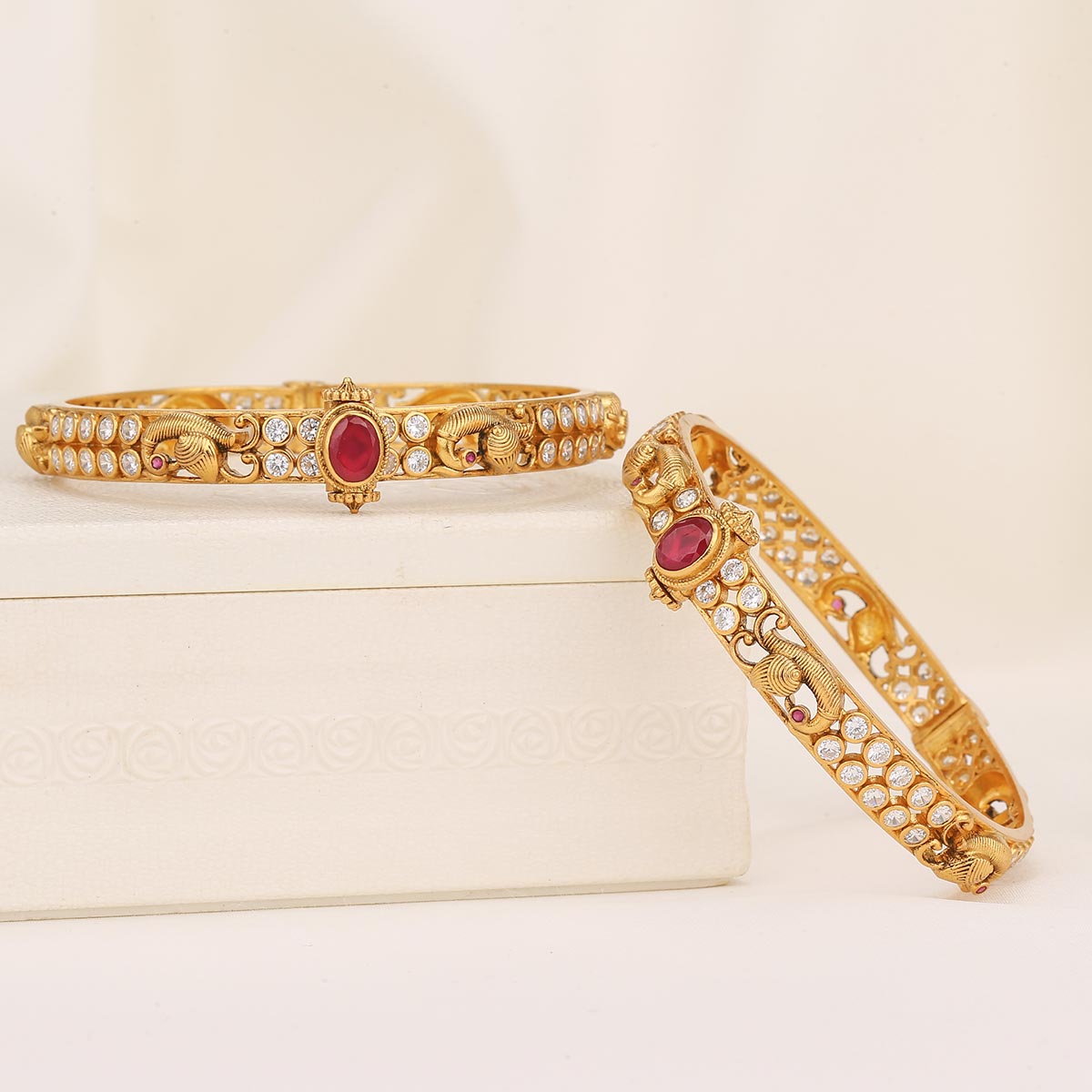 This 92.5 Silver, 24 kt gold-plated stylish Bangles is studded with semi-precious stones to make a stunning statement. Perfect for both formal and casual occasions.