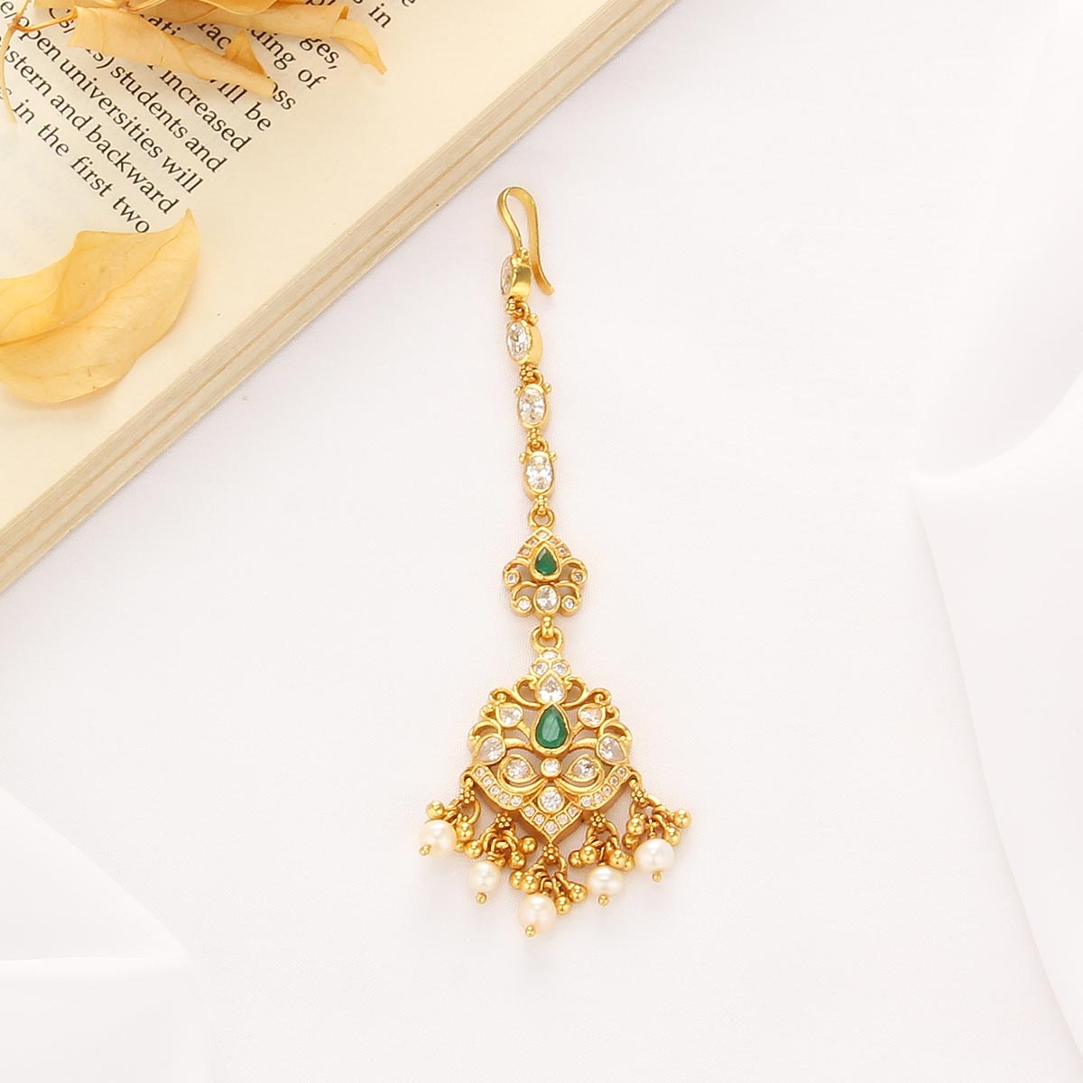 The Maangtikka is a statement piece crafted from 92.5 Sterling silver and 24kt gold-plated for exceptional quality. The design is further embellished with semi-precious stones for an eye-catching finish perfect for any special occasion.