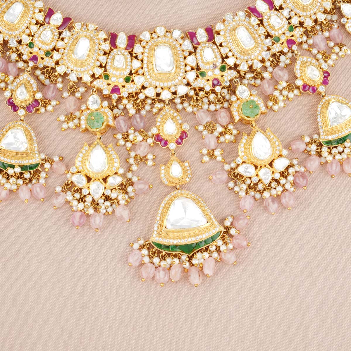 92.5 Silver, Victorian Necklace set studded with Gem Stones and Pearl Beads.