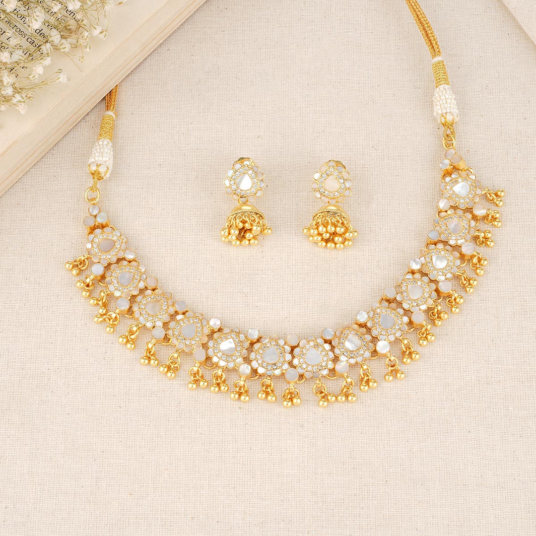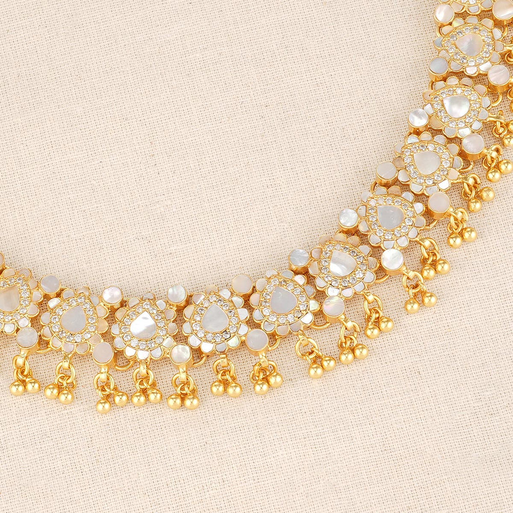 Constructed from 92.5 Silver, this 24kt Gold Plated Necklace set is decorated with stunning Mother of Pearls for a luxe finish.