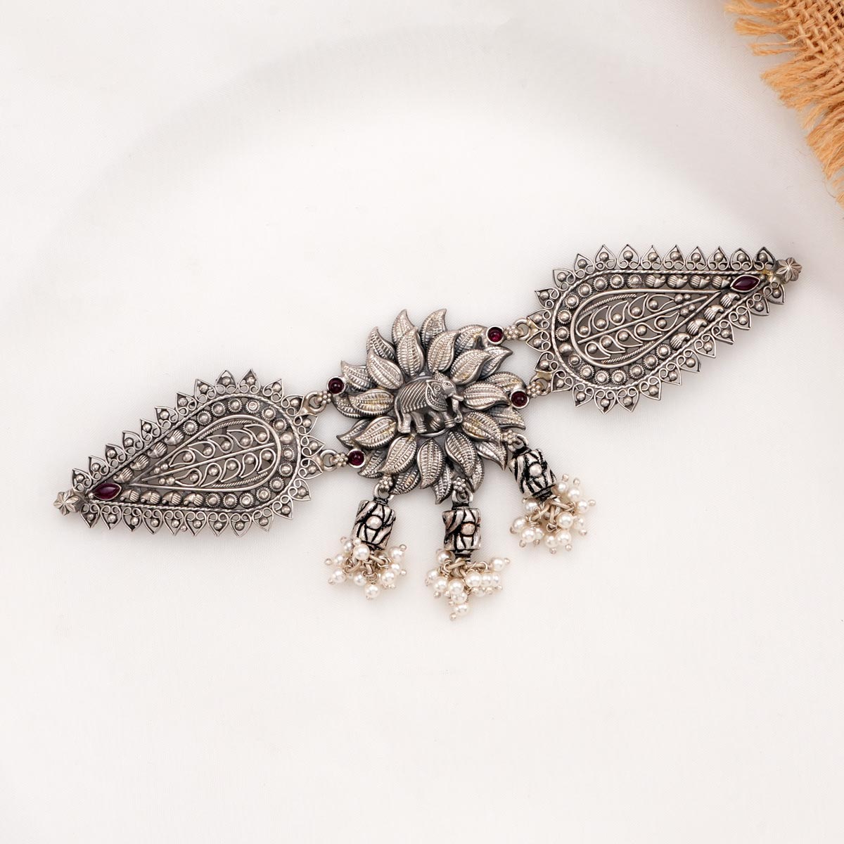 This beautiful Choker set is perfect for any occasion. Crafted from 92.5 sterling silver and oxidized for a unique look, these pretty chokers are studded with semi-precious stones for added sparkle.