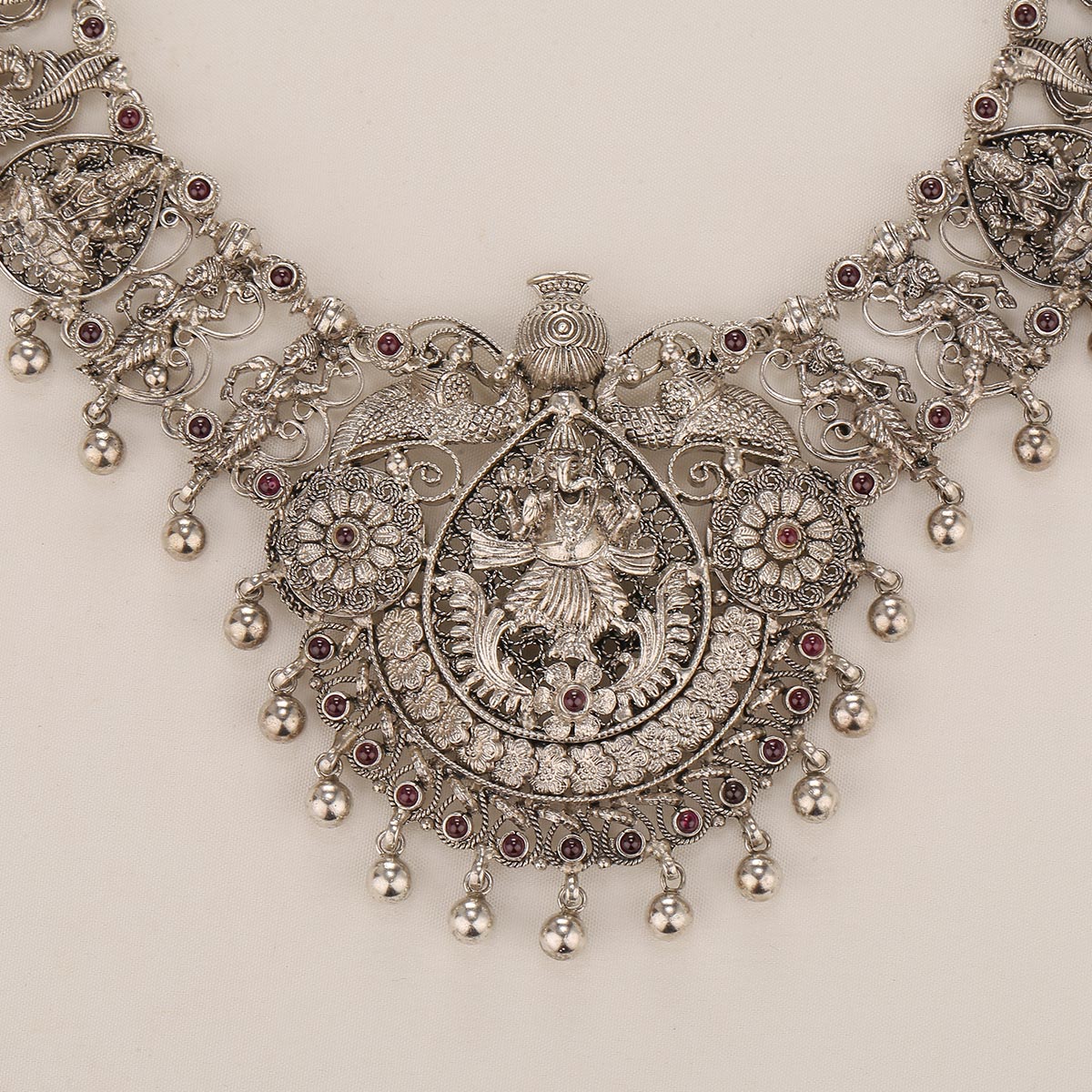 92.5 silver oxidized Necklace , Studded with Semi-Precious Stones.