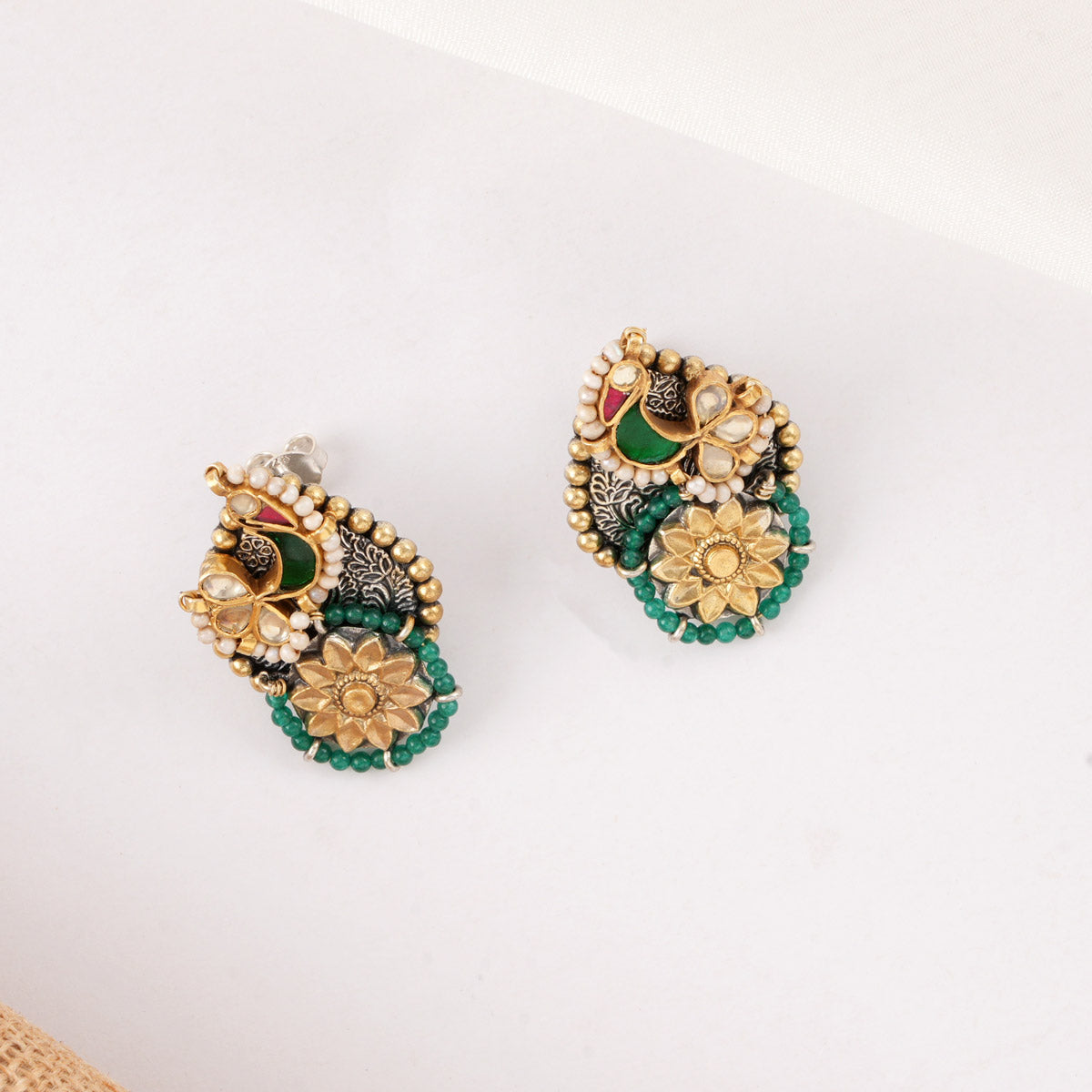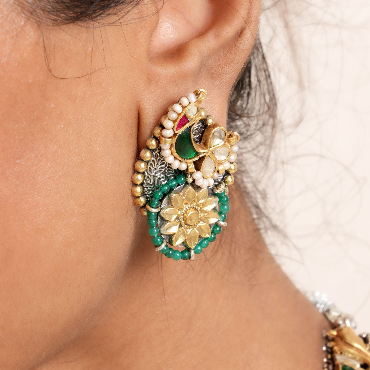 92.5 silver oxidized Necklace Set, Studded with Semi-Precious Stones.