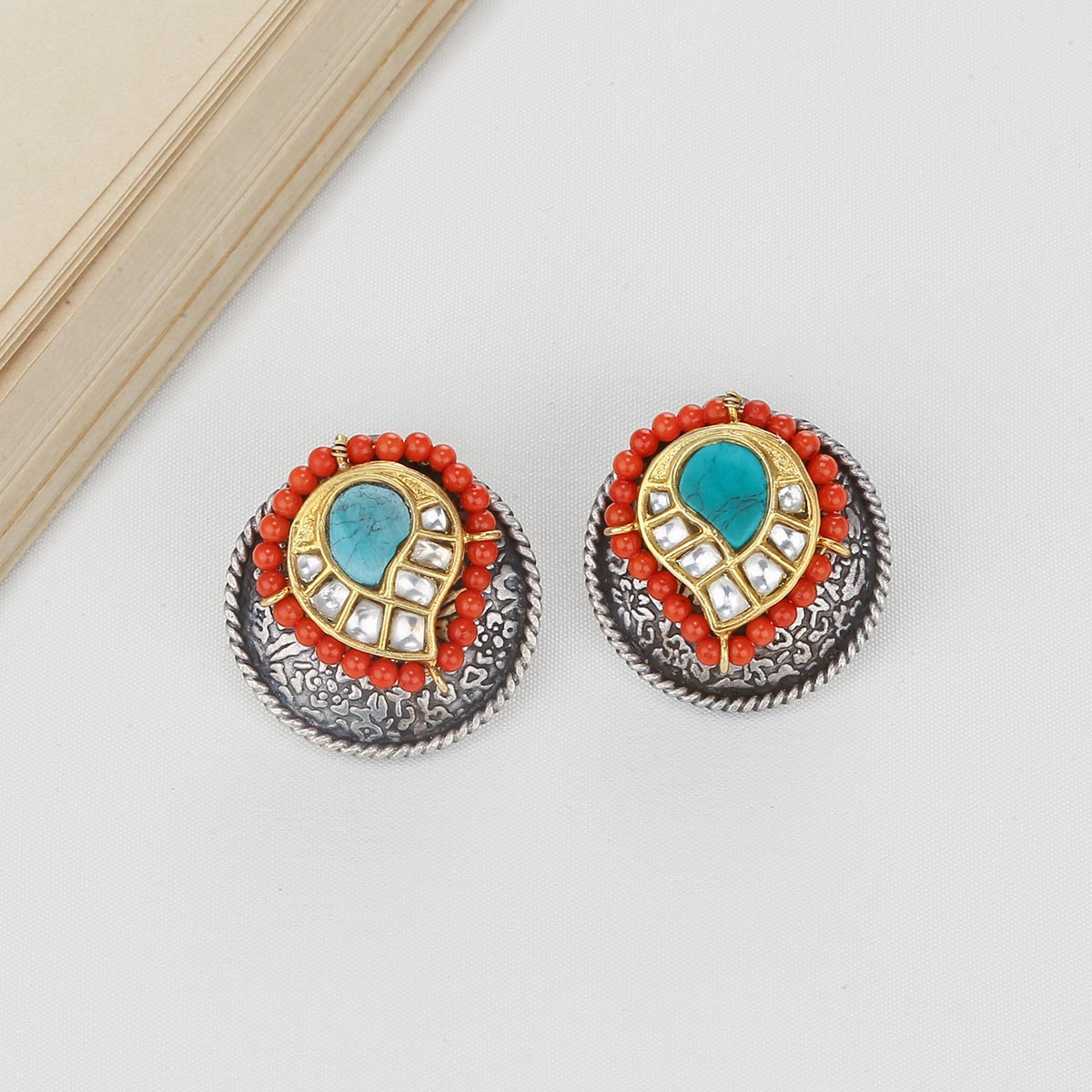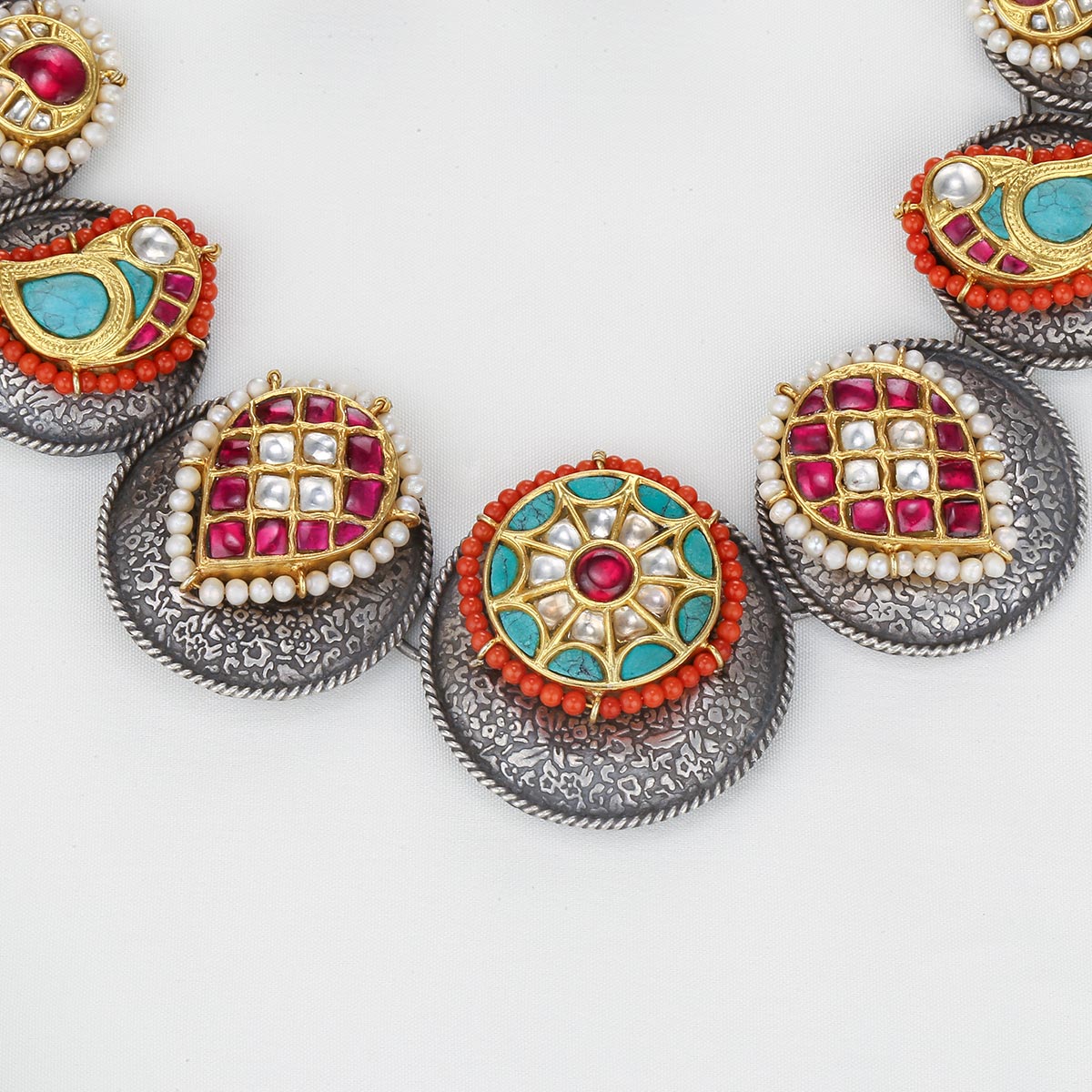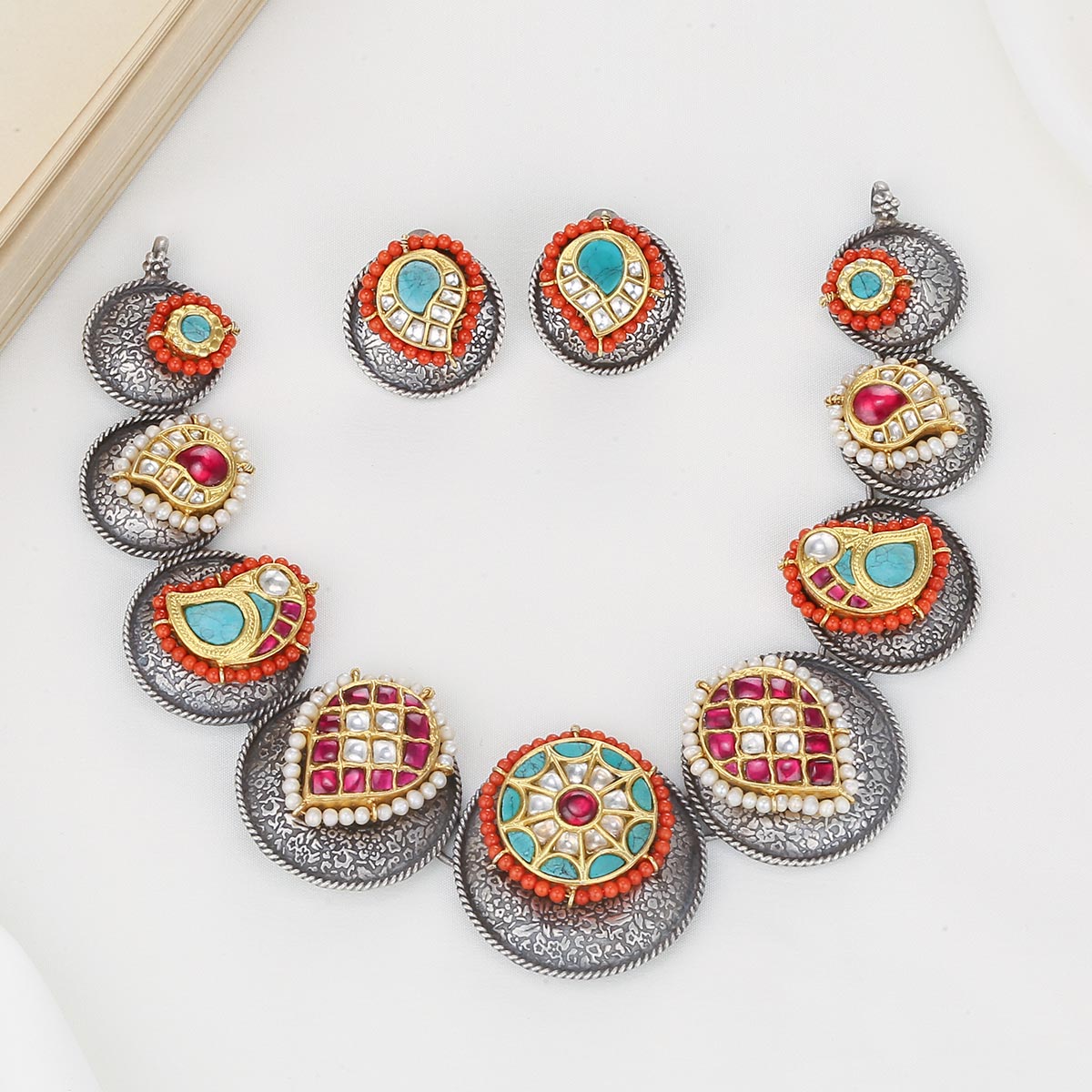 92.5 silver oxidized Necklace Set, Studded with Semi-Precious Stones.