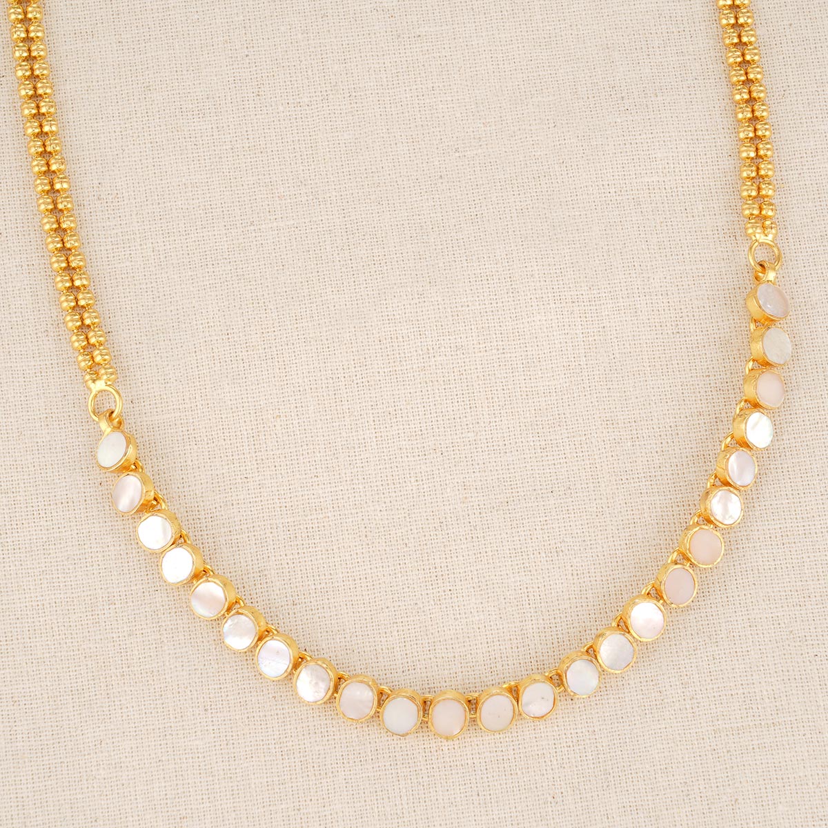 Constructed from 92.5 Silver, this 24kt Gold Plated Necklace set is decorated with stunning Mother of Pearls for a luxe finish.