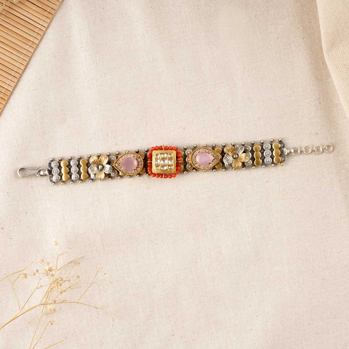 A north Indian jewellery collection, a 92.5 silver oxidized Necklace, Studded with Semi-Precious Stones.