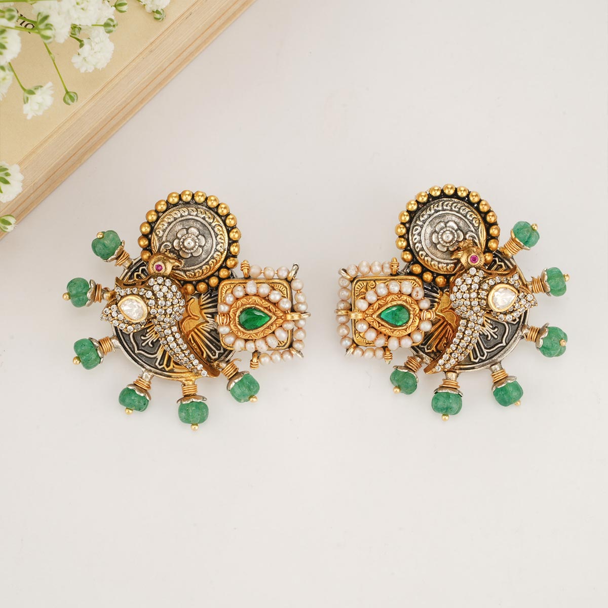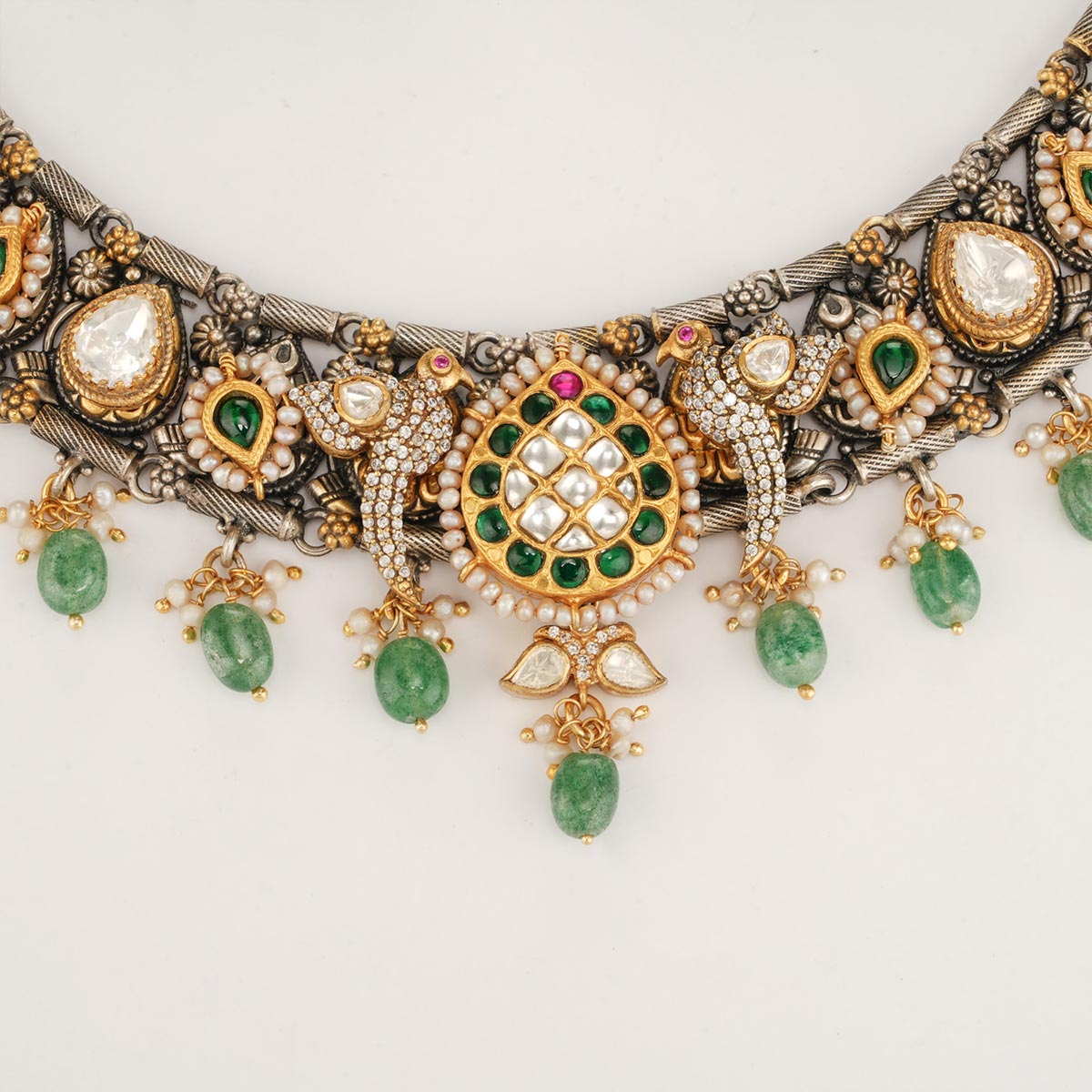 92.5 silver oxidized Necklace Set, Studded with Semi-Precious Stones.