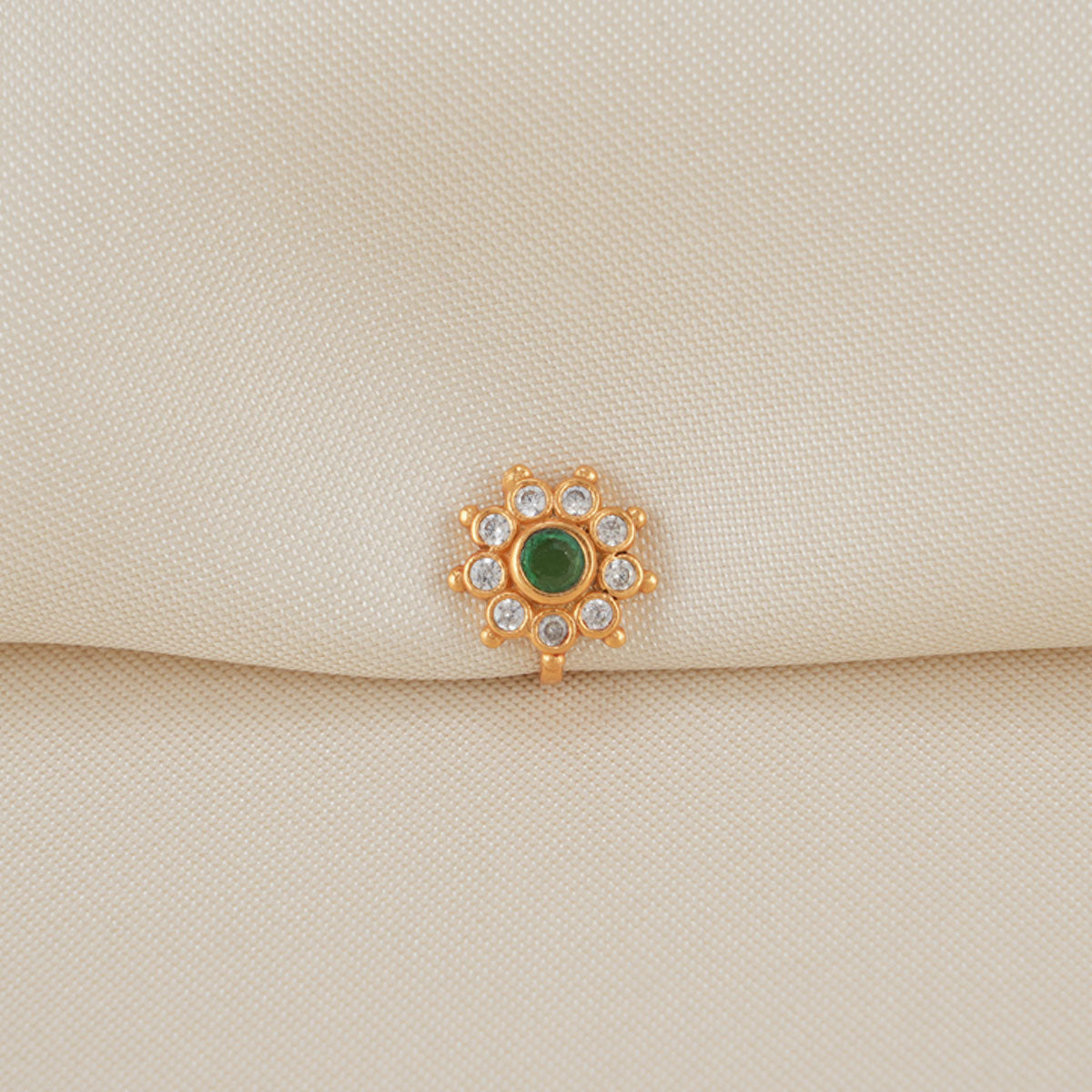 92.5 Silver Nose Pins Plated with 24kt Gold and Encircled with Semi-Precious Stones, Perfect for Non-pierced Wearers.