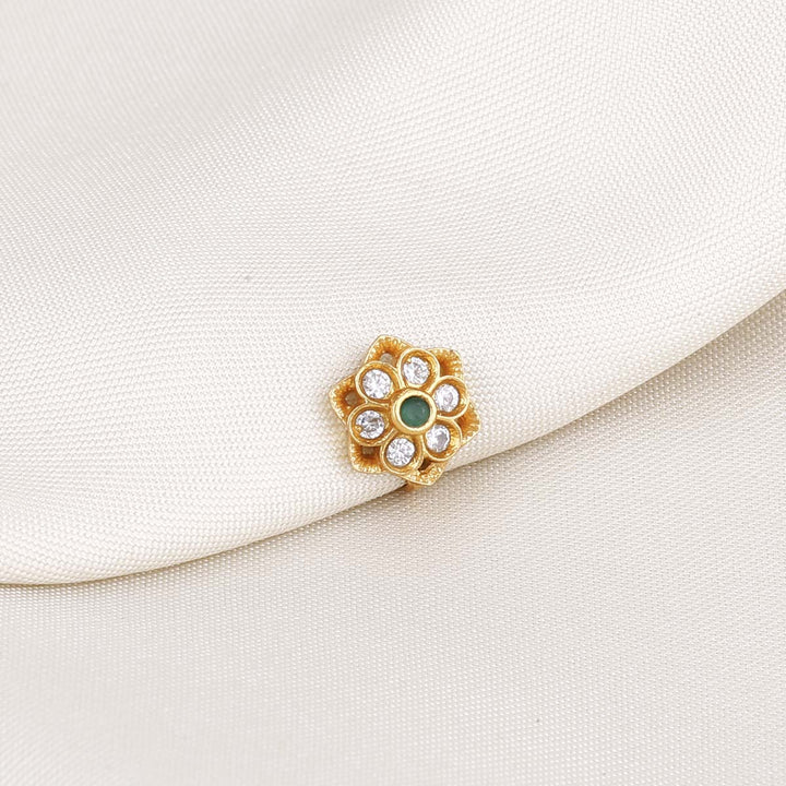 92.5 Sterling Silver, 24 karat Gold Plated Non-Pierced Nose Pin with Semi-Precious Stones Accentuating its Design.