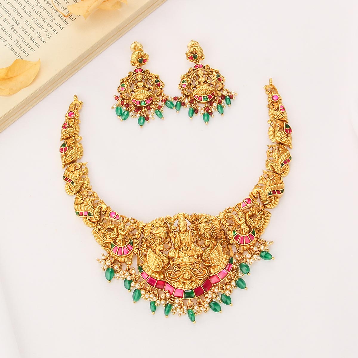 Elevate your style with this Majestic Look Nagas necklace Set. Crafted from 92.5 Silver and 24kt Gold Plated, this set boasts exquisite semi-precious stones for a dazzling effect.