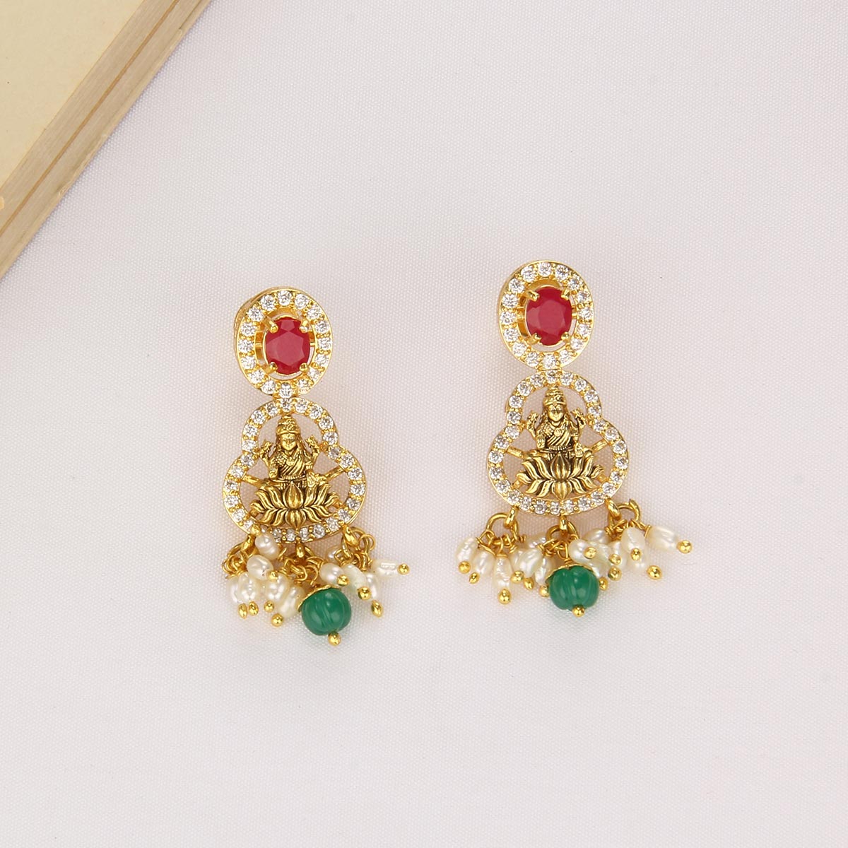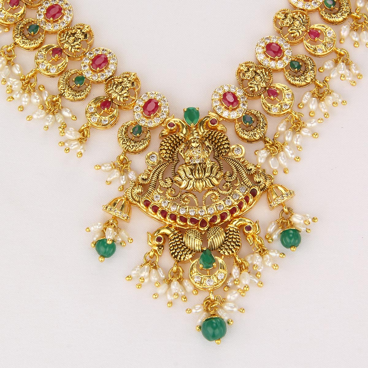 This 92.5 Silver, 24 kt Gold-Plated Short Necklace Set is adorned with Semi-precious Stones for a luxurious aesthetic.