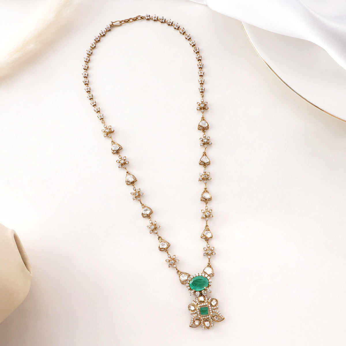 92.5 Silver, Victorian Necklace studded with Gem Stones.