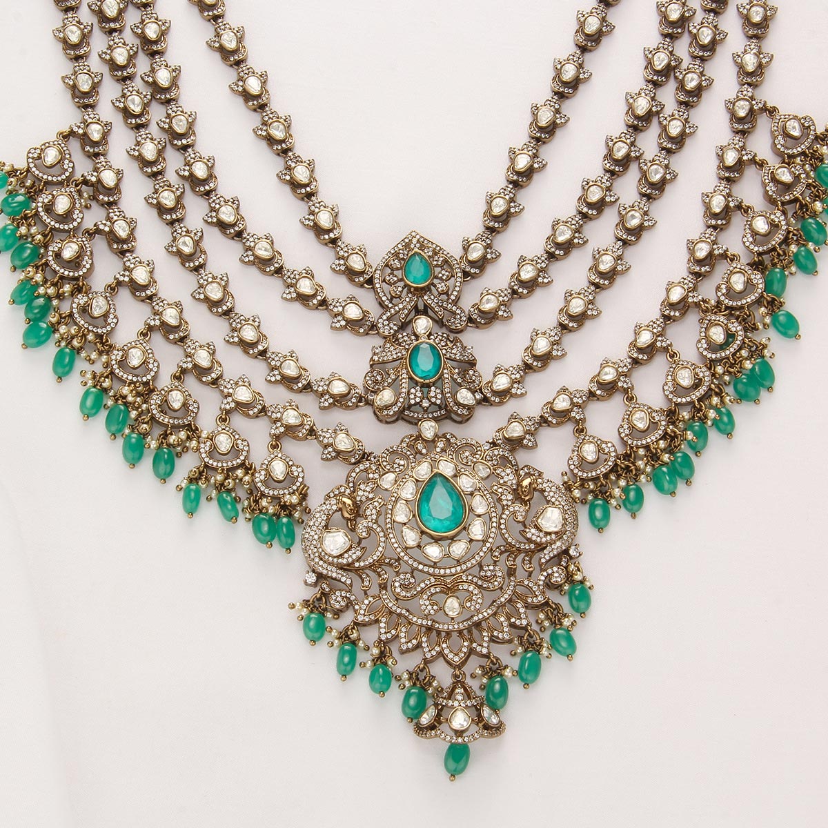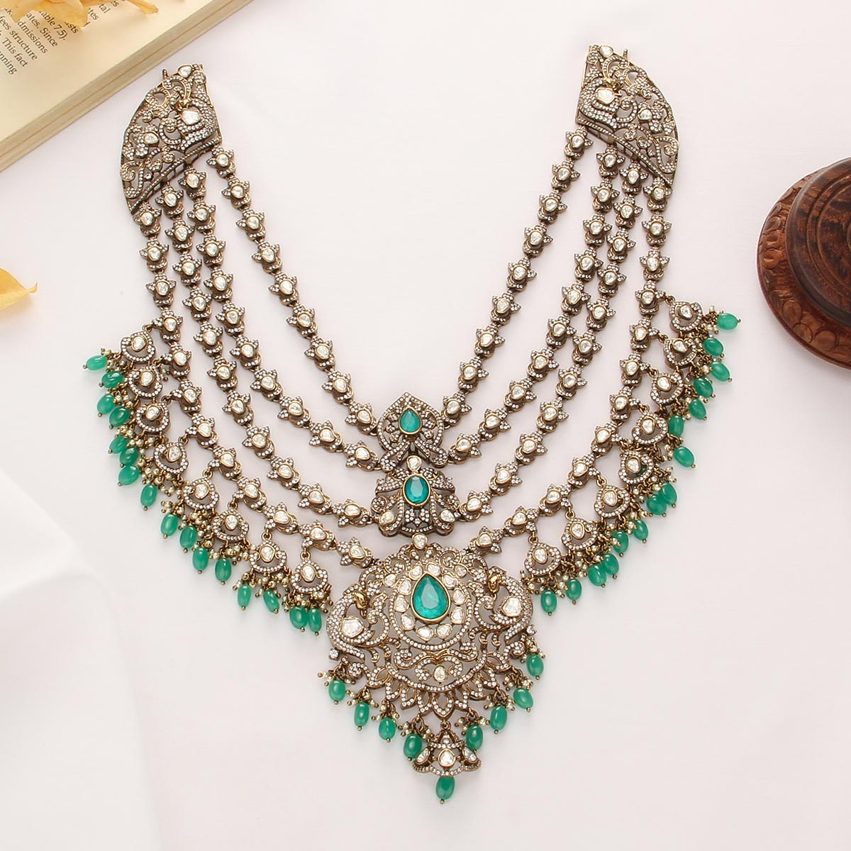 92.5 Silver, Victorian Necklace studded with Gem Stones.