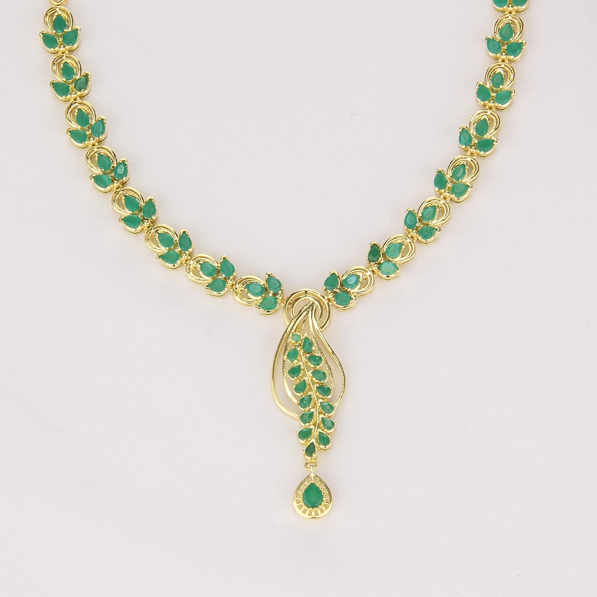 This 92.5 Silver, 24 kt Gold-Plated Short Necklace Set is adorned with Semi-precious Stones for a luxurious aesthetic.