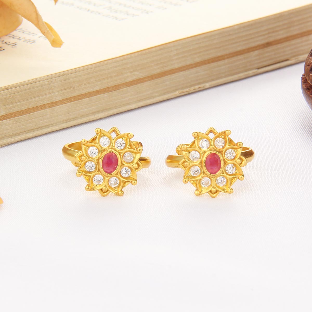 92.5 Silver, Gold Plated Stone Toe Rings.