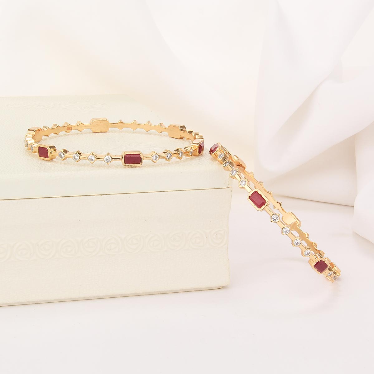 This 92.5 Silver, 24 kt gold-plated stylish Bangles is studded with semi-precious stones to make a stunning statement. Perfect for both formal and casual occasions.