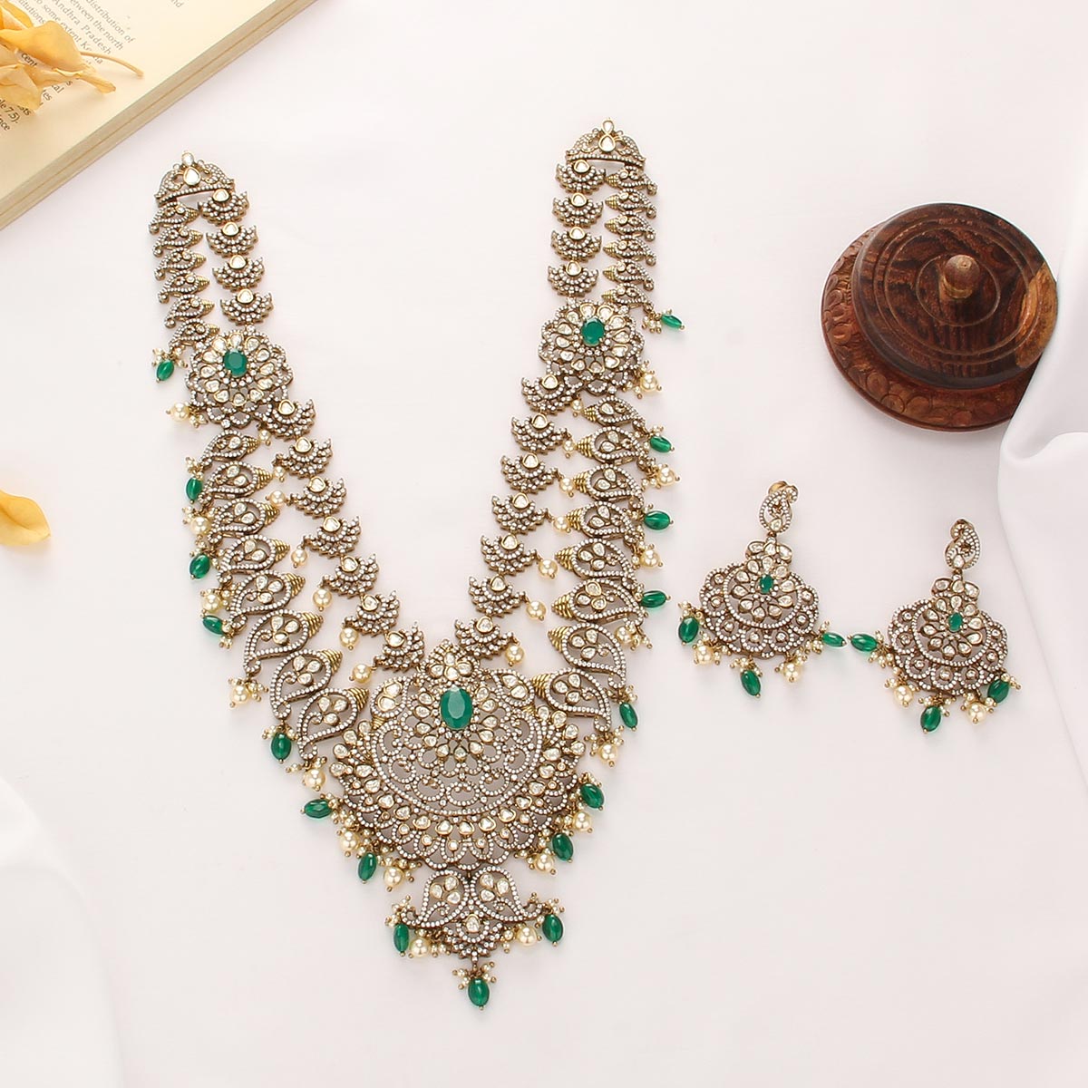 92.5 Silver, Victorian Necklace studded with Gem Stones.