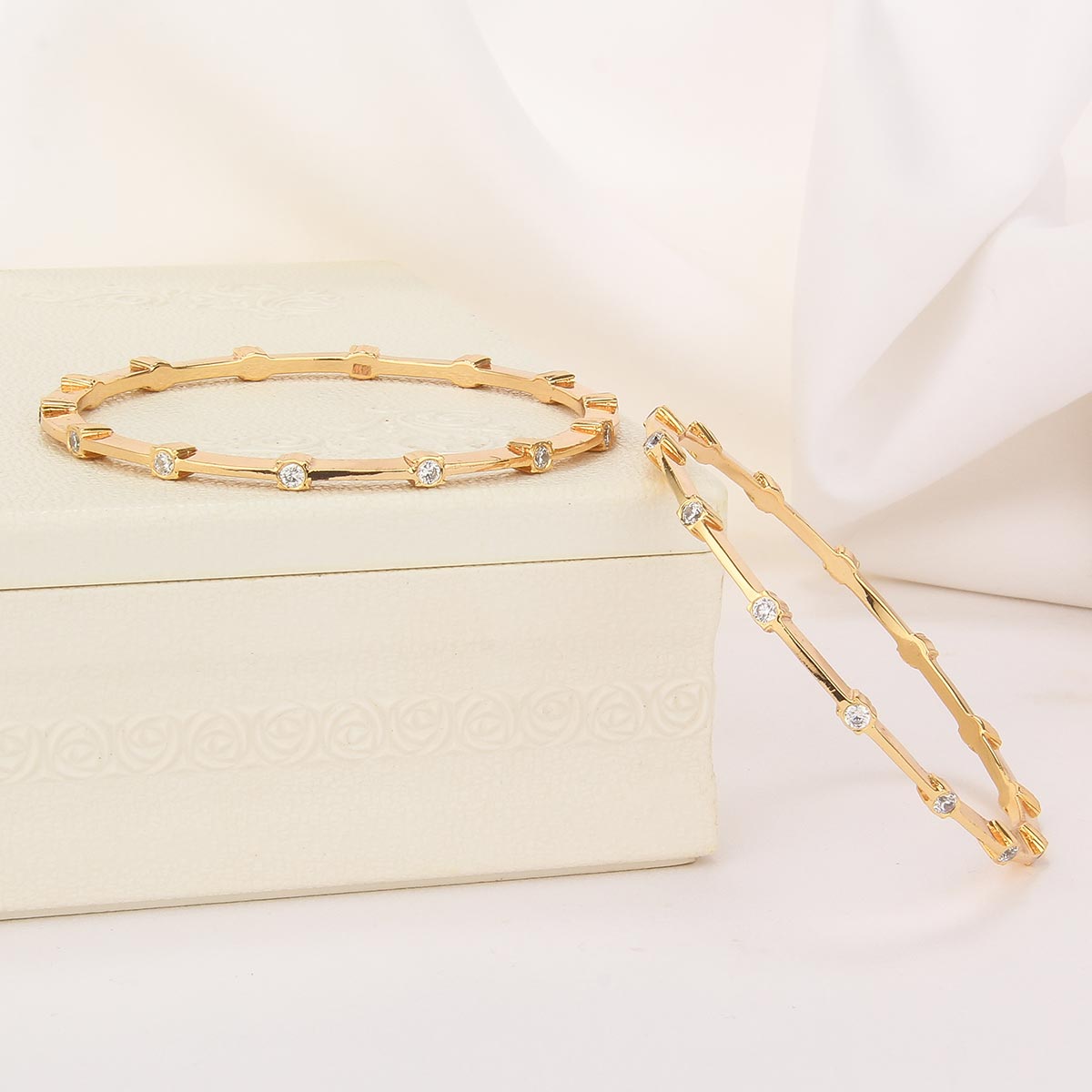 This 92.5 Silver, 24 kt gold-plated stylish Bangles is studded with semi-precious stones to make a stunning statement. Perfect for both formal and casual occasions.