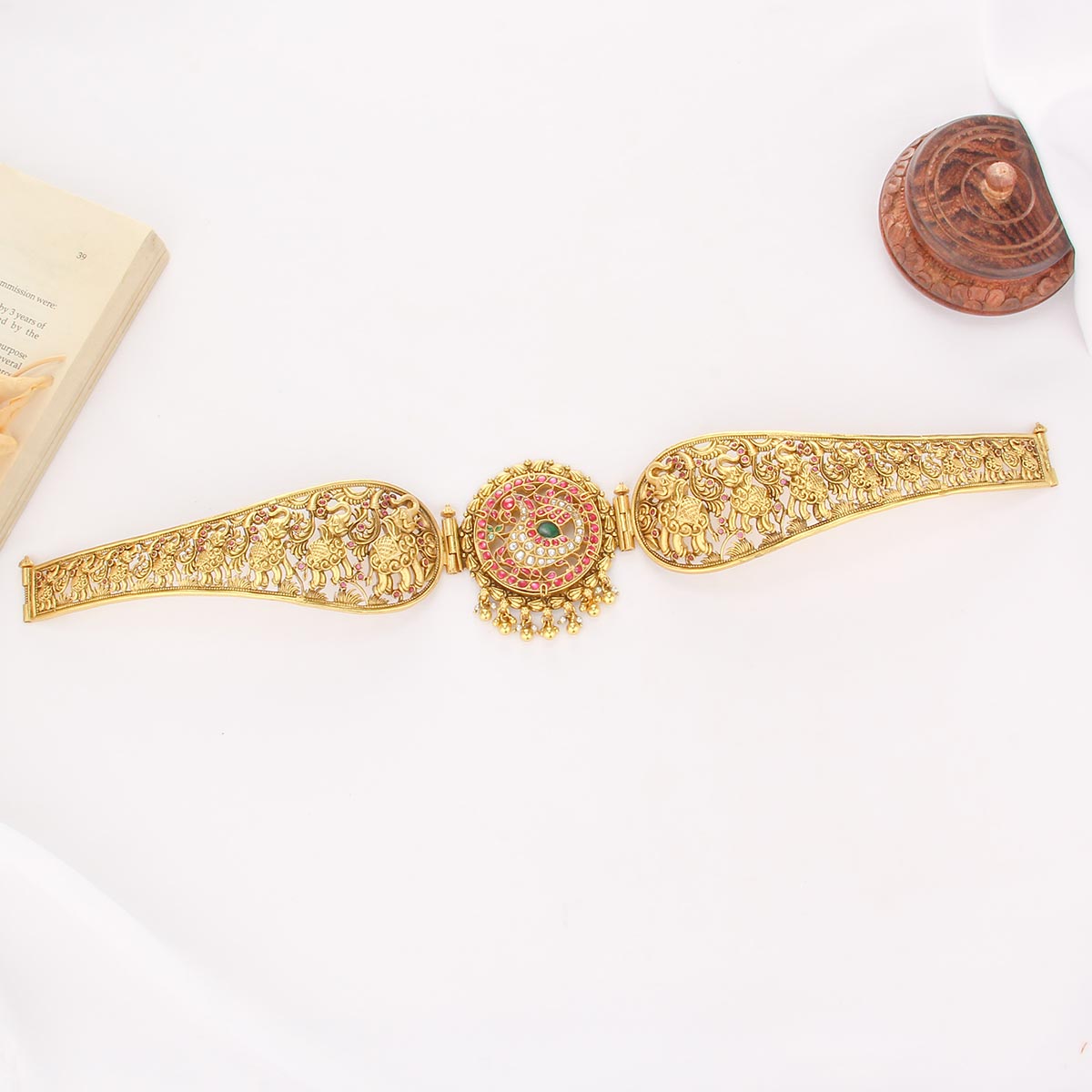 92.5 Silver, Gold Plated Oddiyanam/vadanam. customarily gifted to brides as an elegant feminine design, blessing the wearer with bountiful happiness.