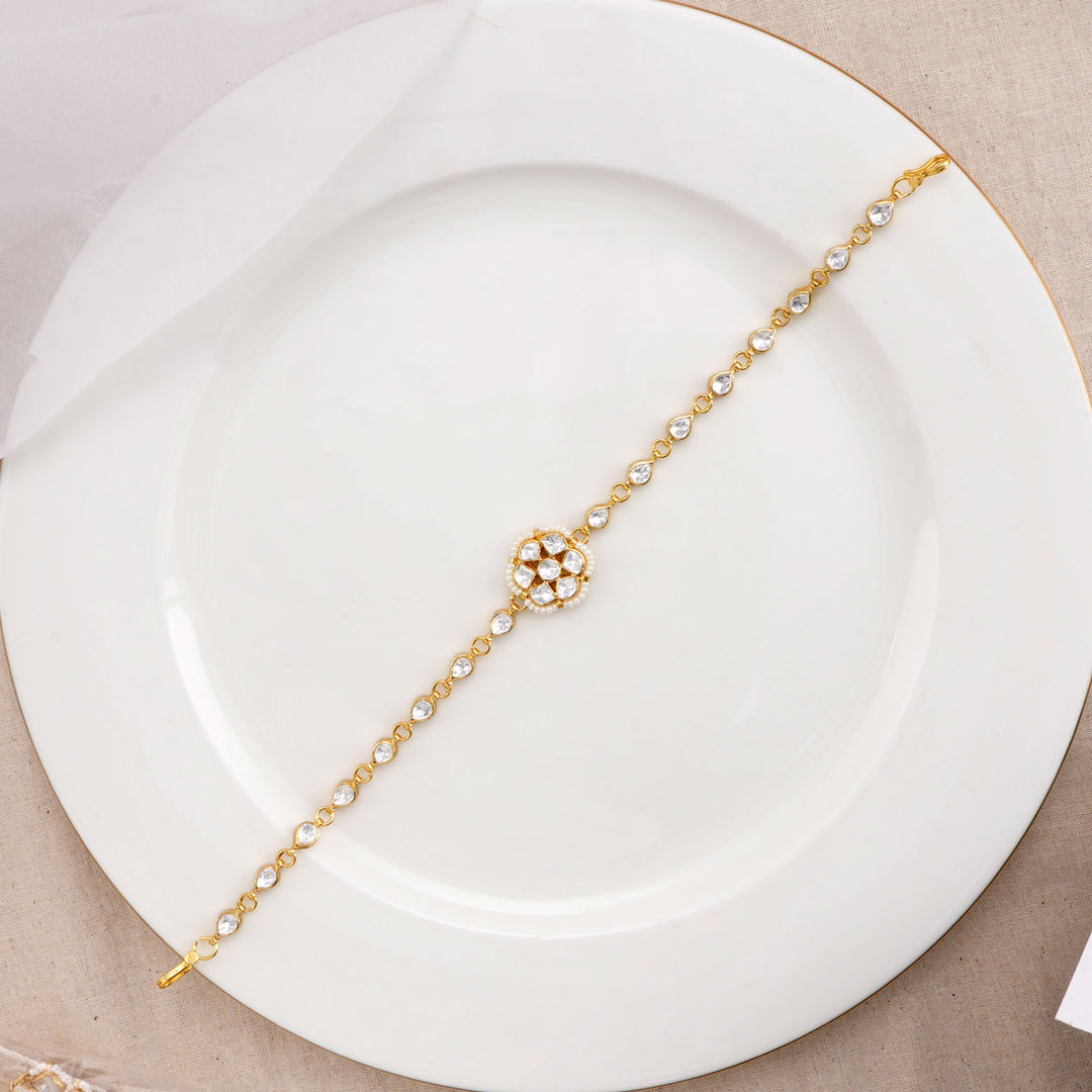 This Delightful  Sheeshphool is crafted with 92.5 Silver and 24Kt Gold Plating and is embellished with Moissanite Stones.