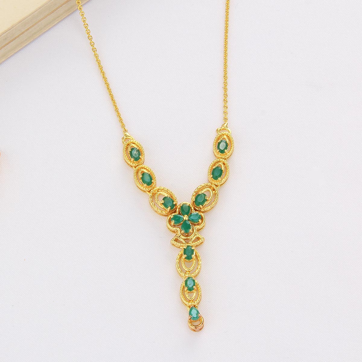 This 92.5 Silver, 24 kt Gold-Plated Long Necklace is adorned with Semi-precious Stones for a luxurious aesthetic.
