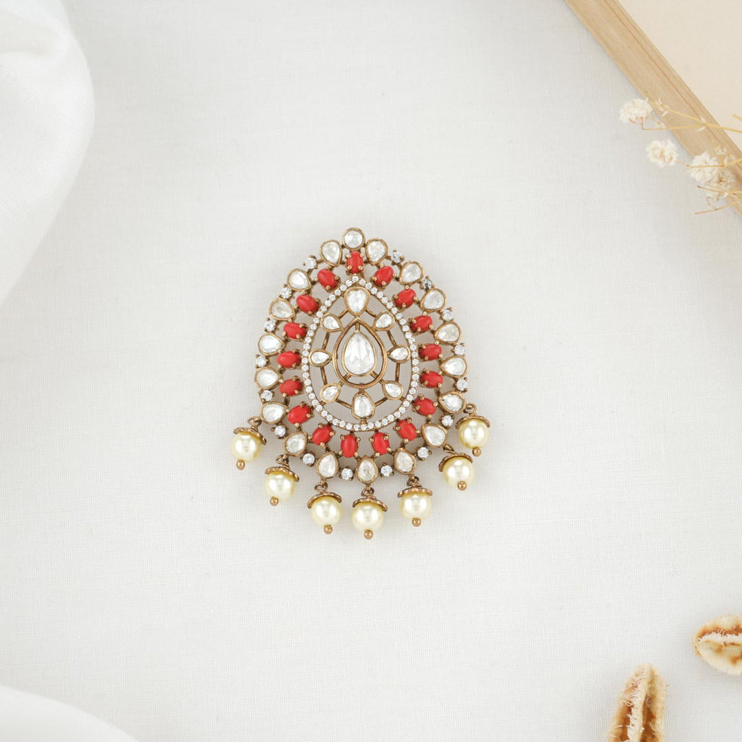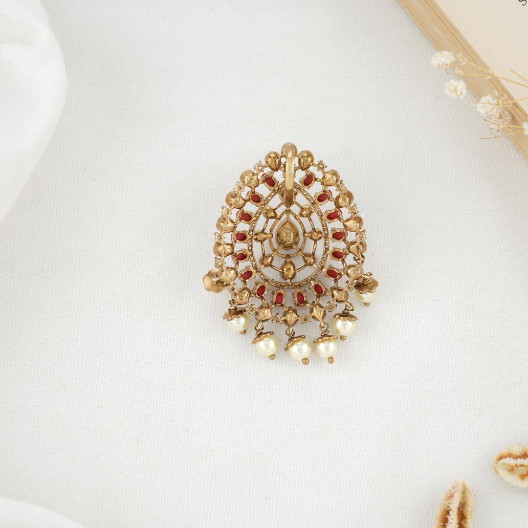 92.5 Silver, Victorian Pendant studded with Gem Stones and Pearl Beads.