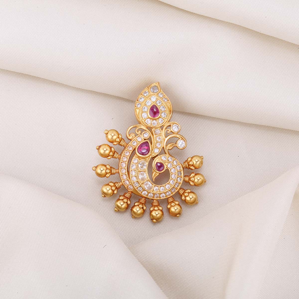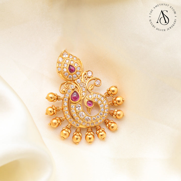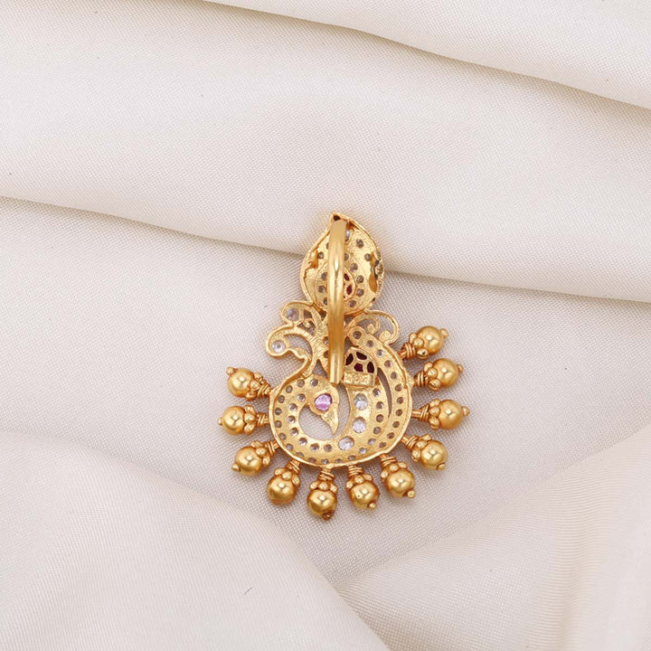 This 92.5 Silver, 24 kt gold-plated stylish Pendant is studded with semi-precious stones to make a stunning statement. Perfect for any special occasion.
