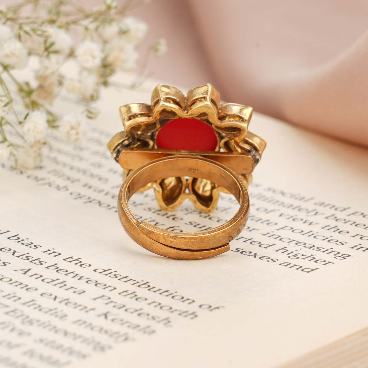 92.5 Silver, Victorian Ring studded with Gem Stones.