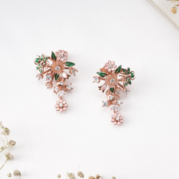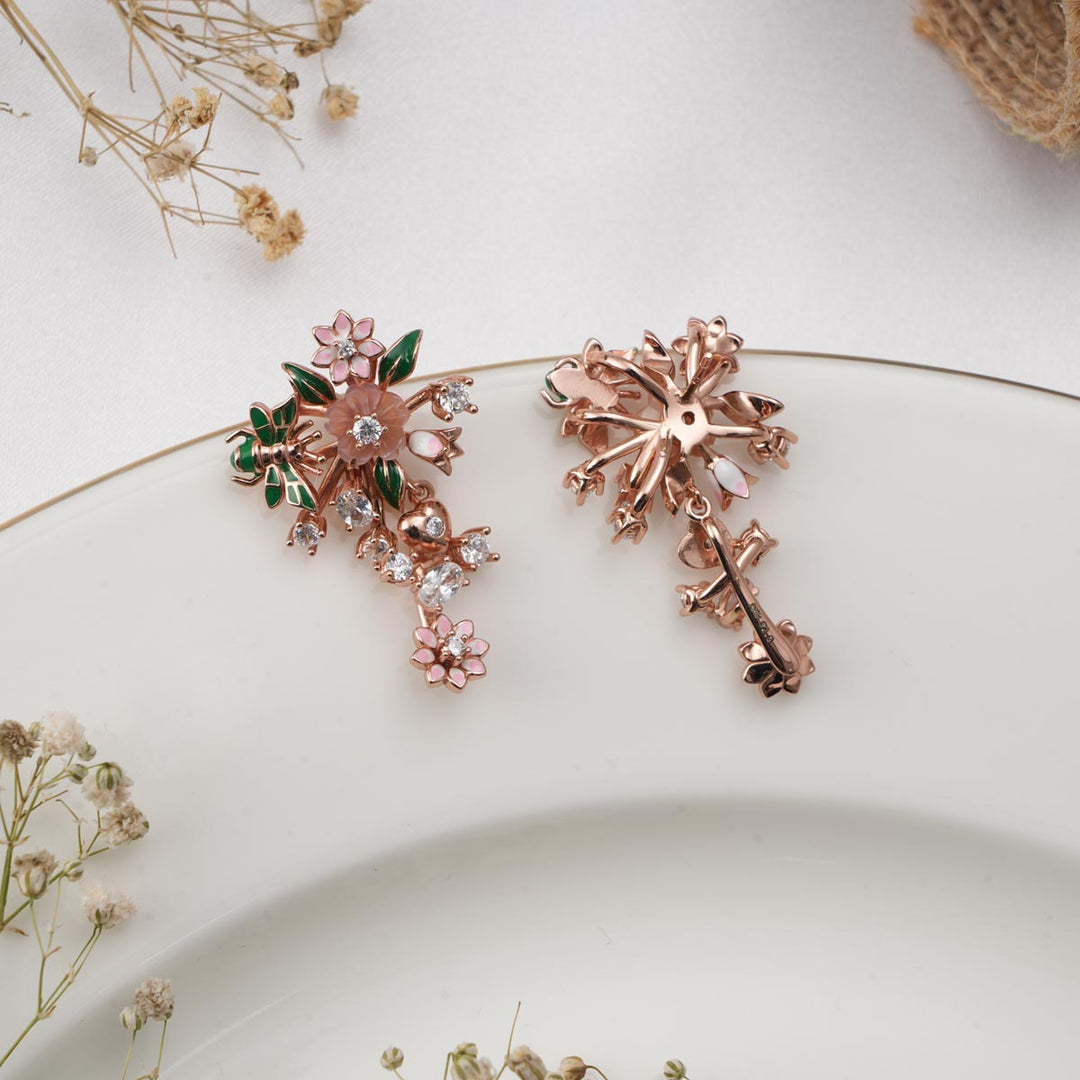 92.5 Rose Gold silver, Earrings studded with semi-precious stones.