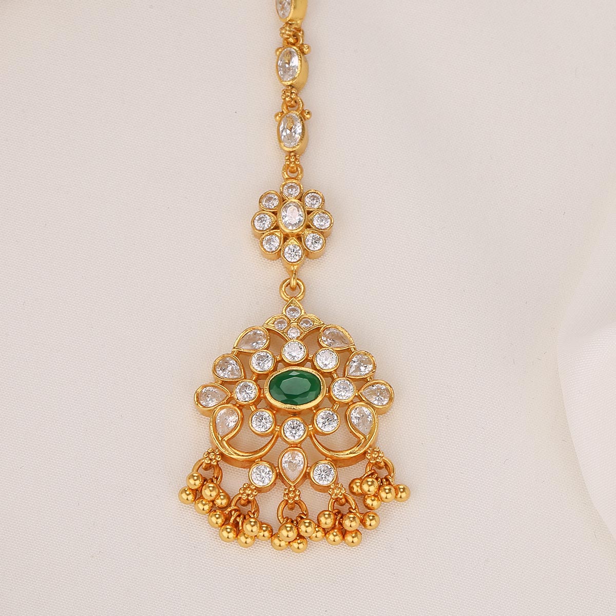 The Maangtikka is a statement piece crafted from 92.5 Sterling silver and 24kt Gold plated for exceptional quality. The design is further embellished with semi-precious stones for an eye-catching finisha perfect pick for any special occasion.