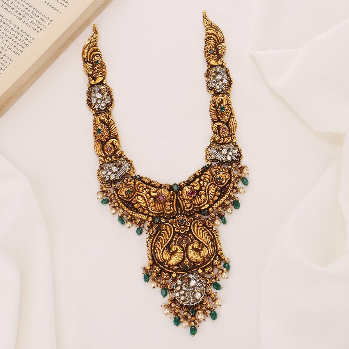 Elevate your style with this Majestic Look Nagas necklace. Crafted from 92.5 Silver and 24kt gold-plated, this set boasts exquisite semi-precious stones for a dazzling effect.