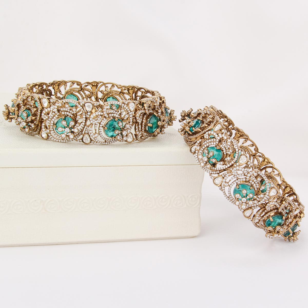 92.5 Silver, Victorian Bangles studded with Gem Stones.