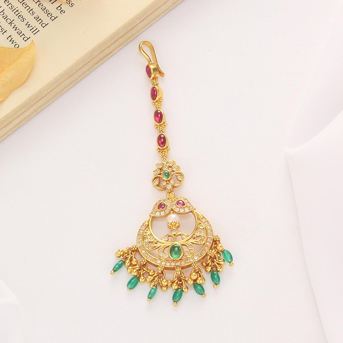 The Maangtikka is a statement piece crafted from 92.5 Sterling silver and 24kt Gold plated for exceptional quality. The design is further embellished with semi-precious stones for an eye-catching finisha perfect pick for any special occasion.
