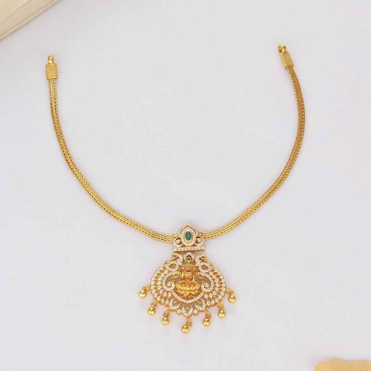 This necklace is crafted from 92.5 Silver and features 24-karat gold plating as well as semiprecious stones.