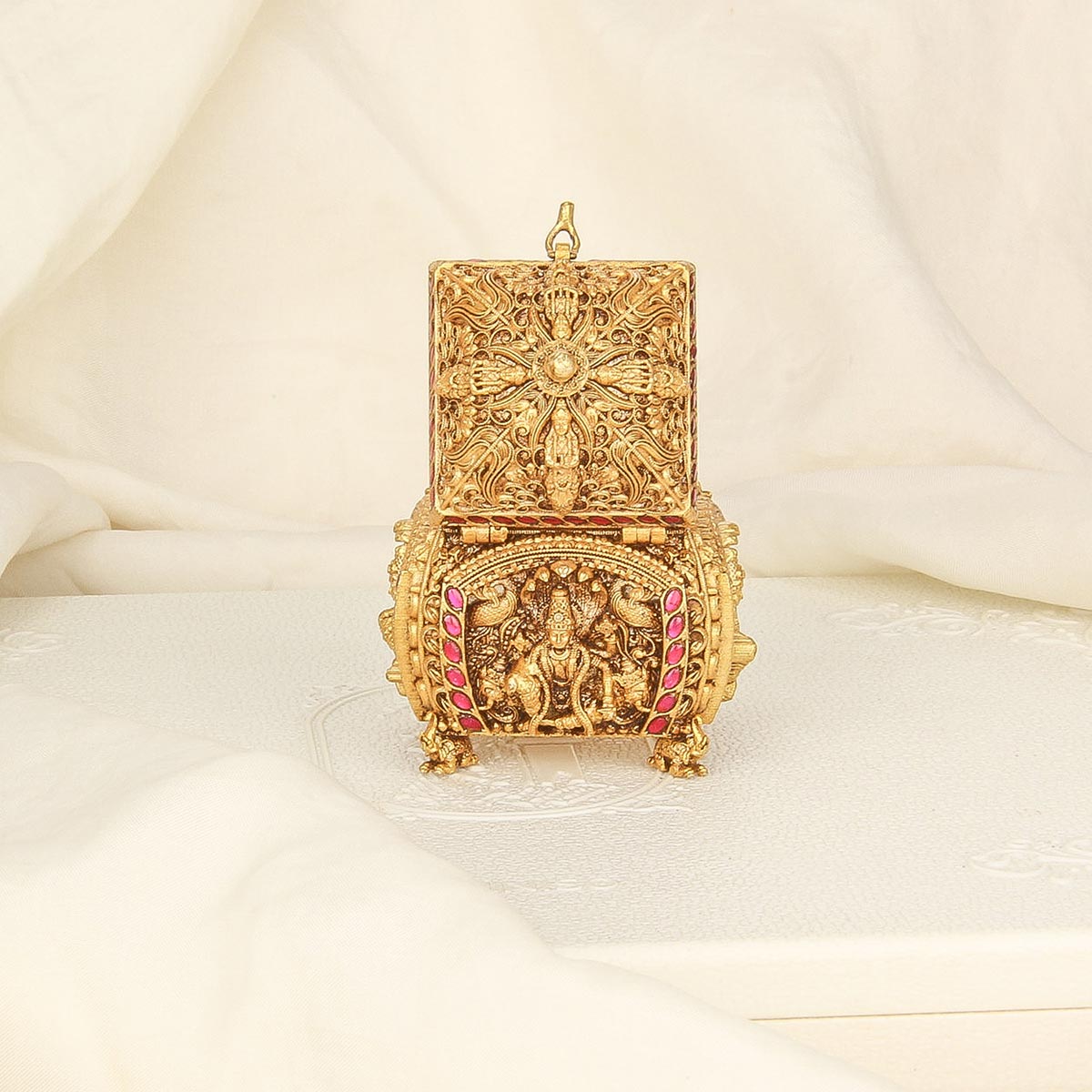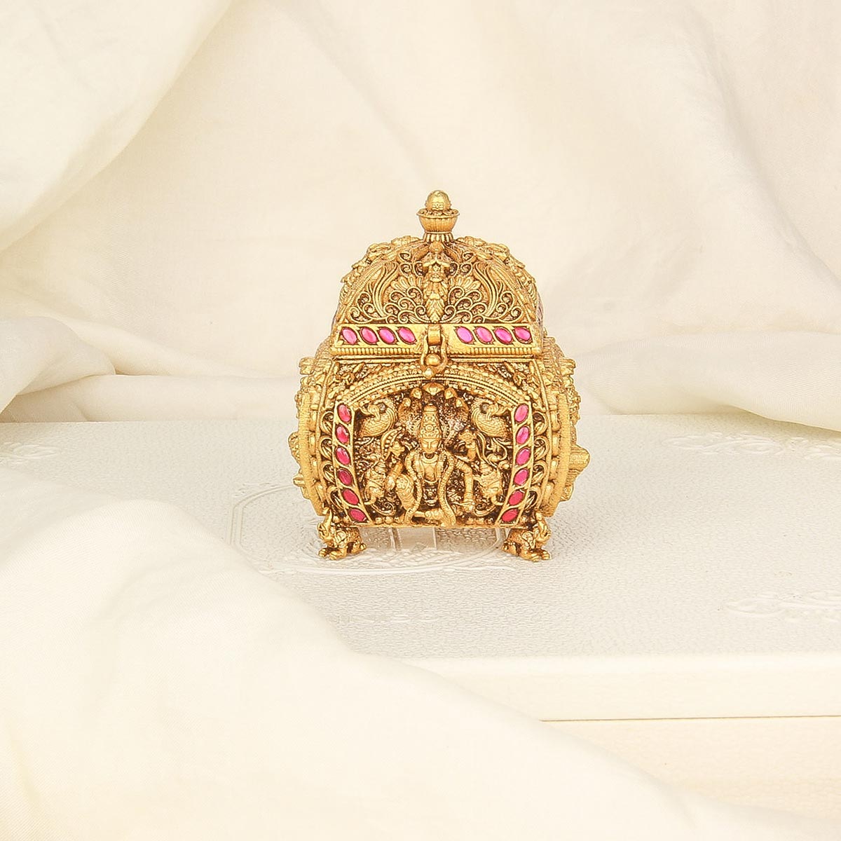 This beautiful Kum Kum Box is a timeless sophistication to any household. Crafted from 92.5 Silver, 24 kt Gold Plated the intricate design is inspired by traditional Indian art, featuring unique patterns and details. Perfect for any style of home!