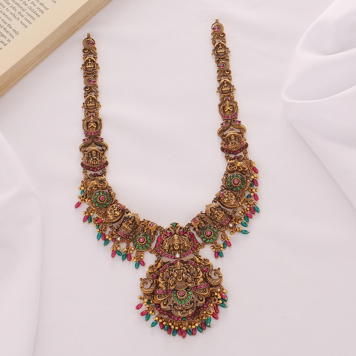 Elevate your style with this Majestic Look Nagas necklace. Crafted from 92.5 Silver and 24kt gold-plated, this set boasts exquisite semi-precious stones for a dazzling effect.