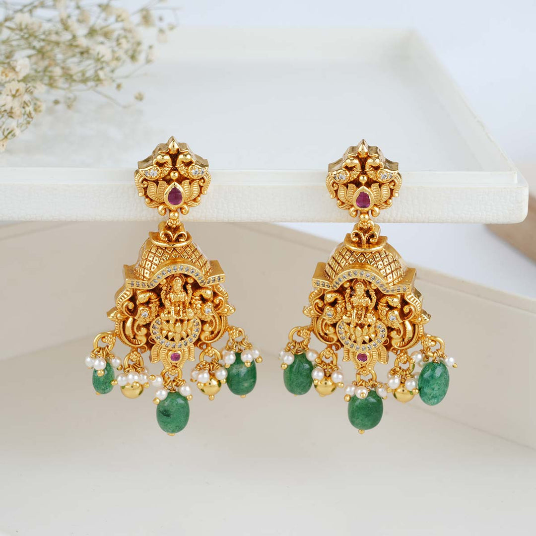 92.5 silver, 24kt gold plated Earrings studded with Semi-Precious stones.
