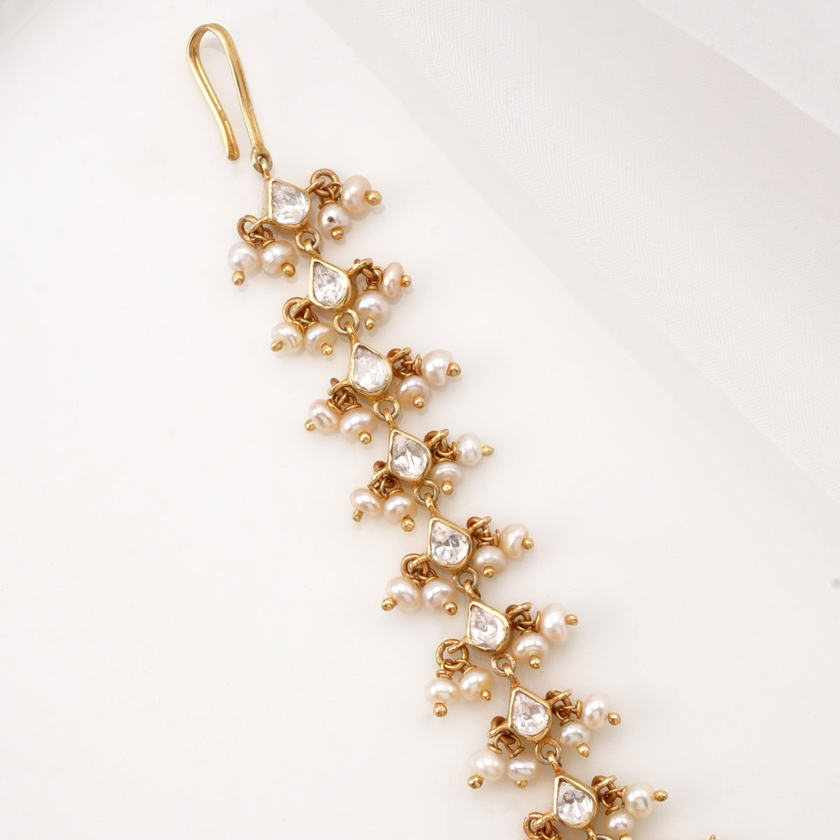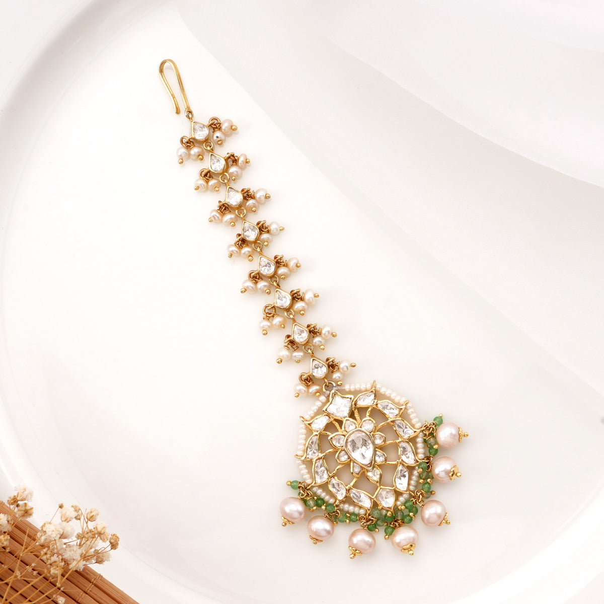 The Maangtikka is a statement piece crafted from 92.5 Sterling silver and 24kt Gold plated for exceptional quality. The design is further embellished with semi-precious stones for an eye-catching finish. A perfect pick for any special occasion.