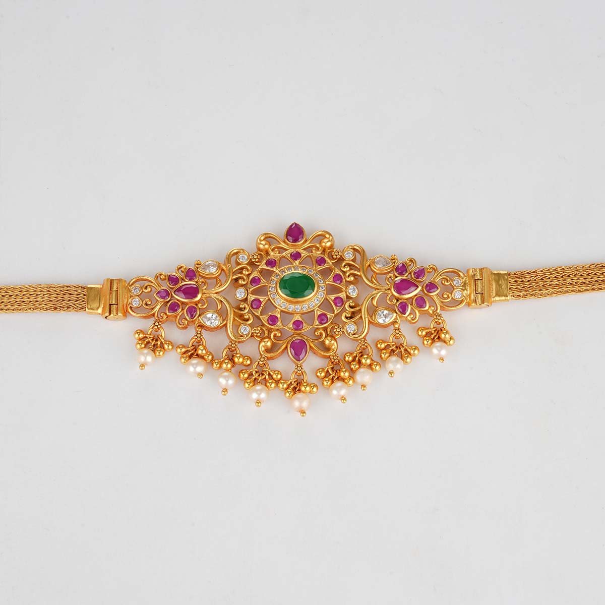 This Vanki features 92.5 silver and 24kt gold plating, with semi-precious stones studded in the design of a cum choker.