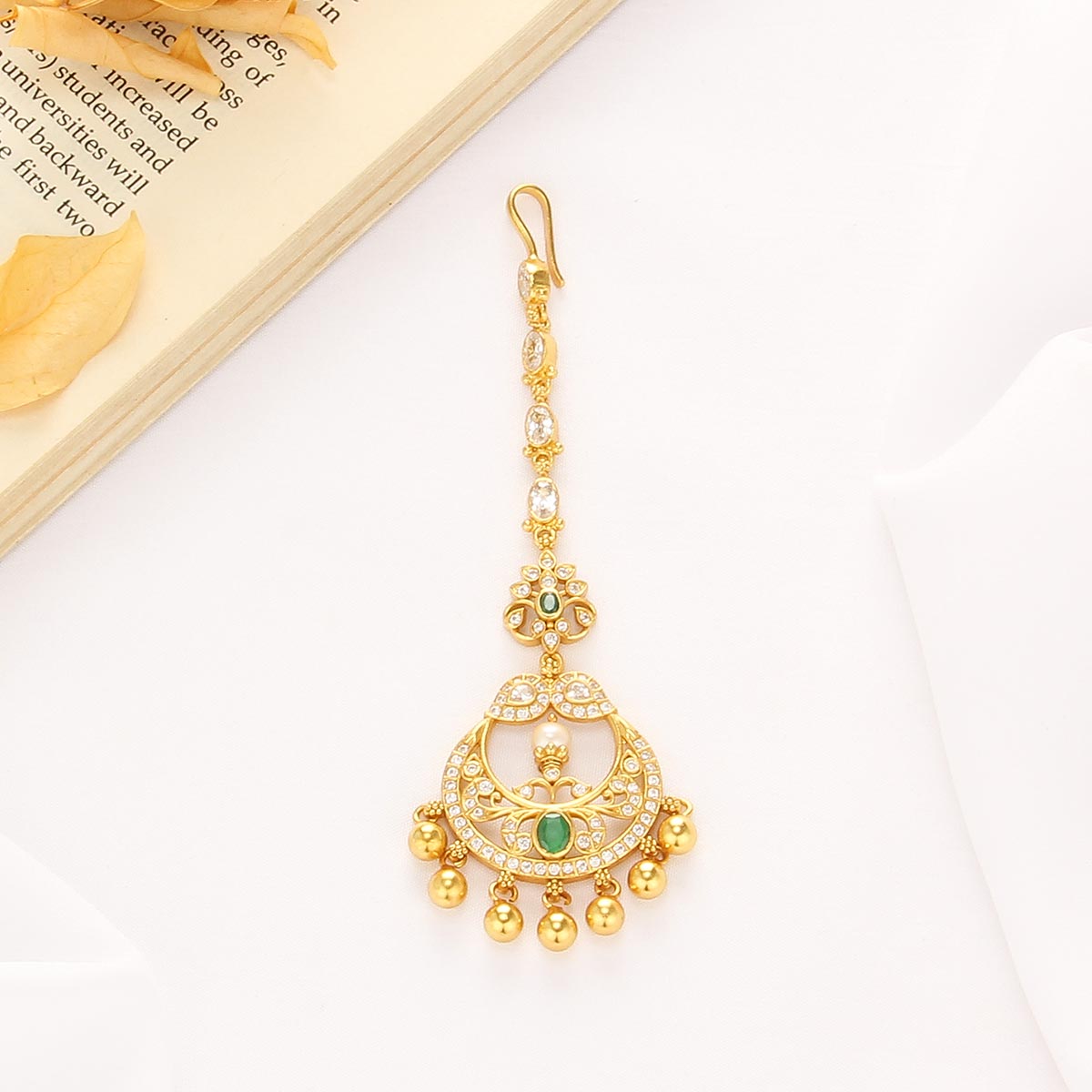 The Maangtikka is a statement piece crafted from 92.5 Sterling silver and 24kt gold-plated for exceptional quality. The design is further embellished with semi-precious stones for an eye-catching finish perfect for any special occasion.