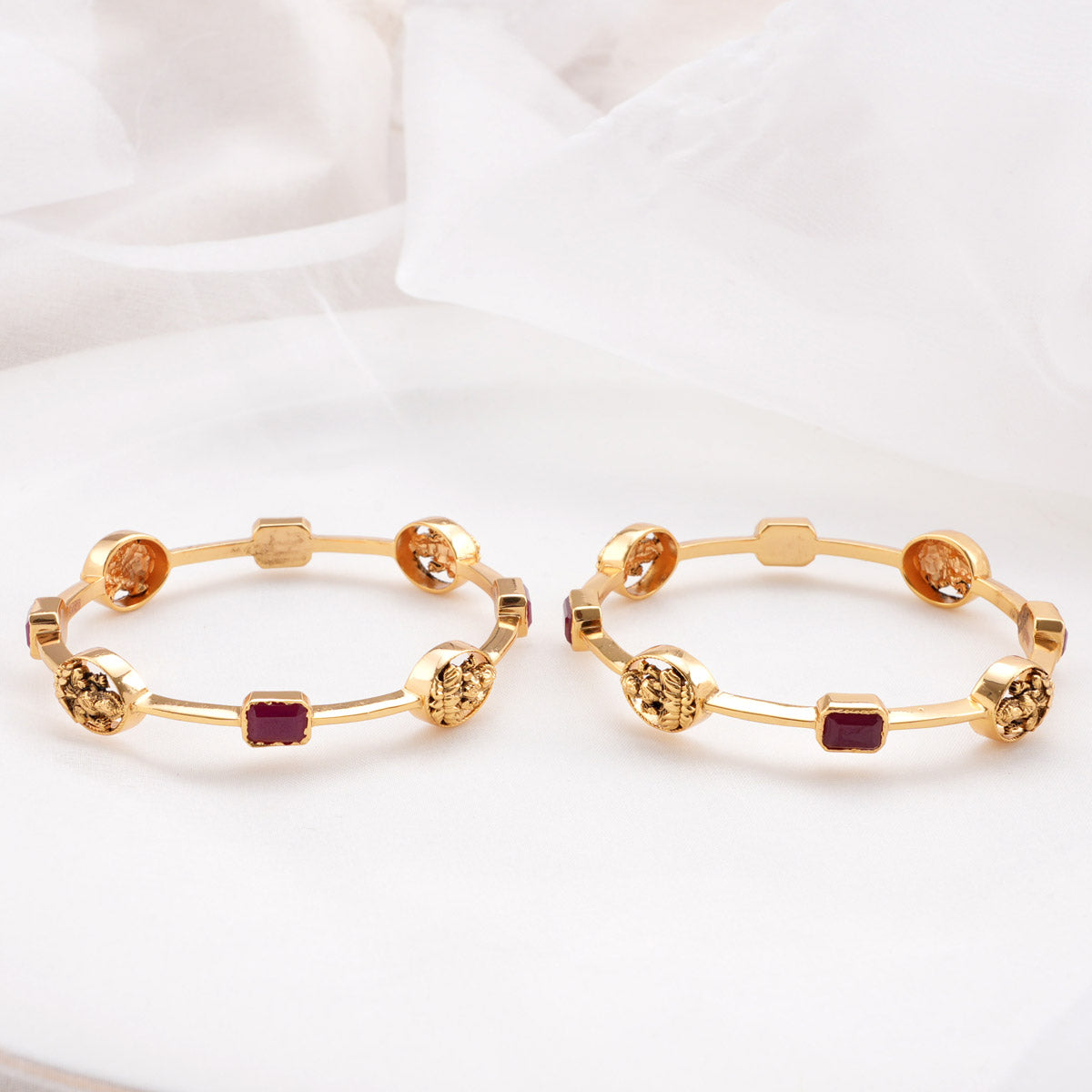 This 92.5 Silver, 24 kt gold-plated stylish Bangles is studded with semi-precious stones to make a stunning statement. Perfect for both formal and casual occasions.