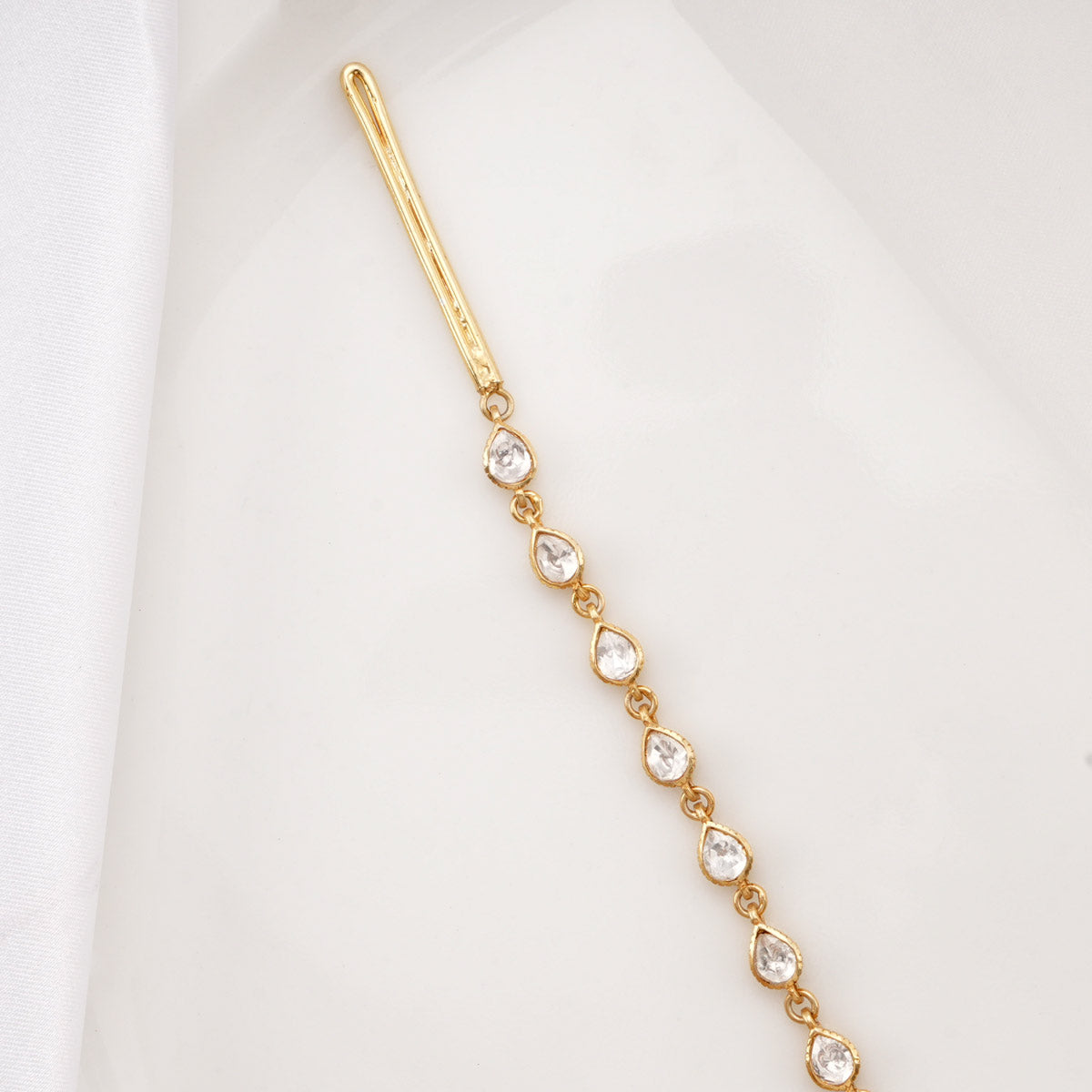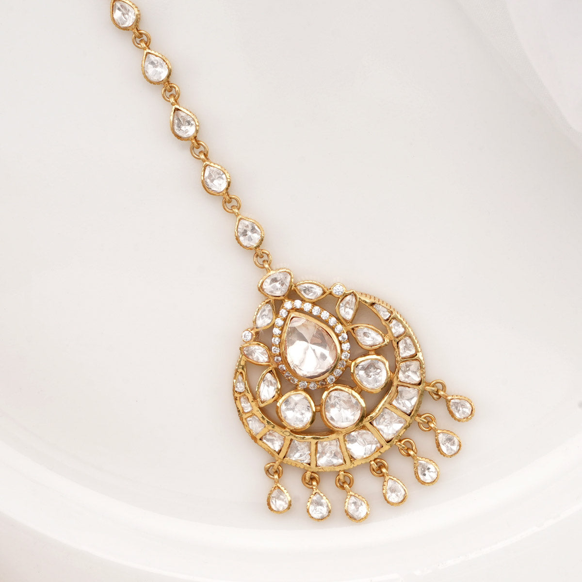 The Maangtikka is a statement piece crafted from 92.5 Sterling silver and 24kt Gold plated for exceptional quality. The design is further embellished with semi-precious stones for an eye-catching finish. A perfect pick for any special occasion.