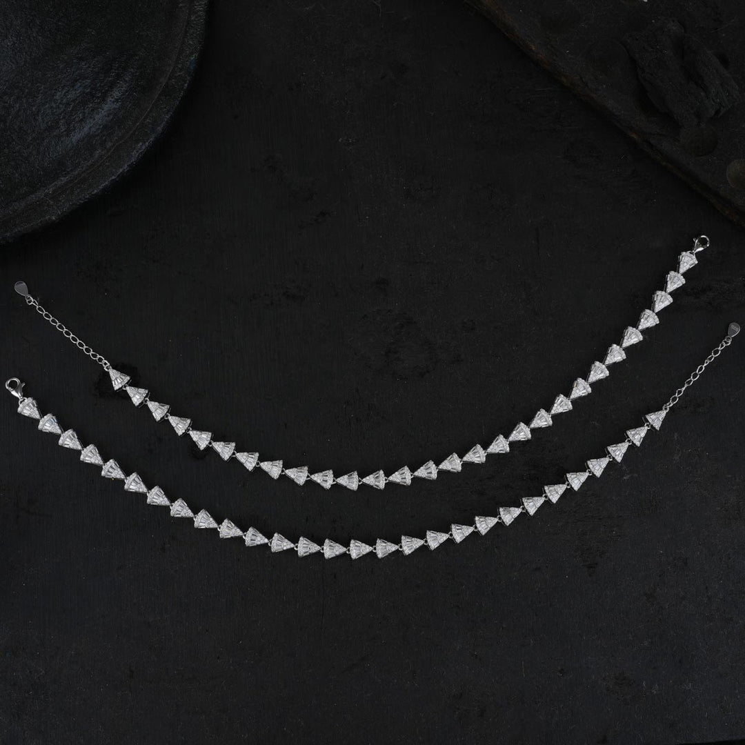 Let your feet grab all the attention with this Ashitha pair of anklets with Fancy designs all over. Handcrafted in Sterling Silver (92.5%) it makes it a great match with outfits of any color or design.