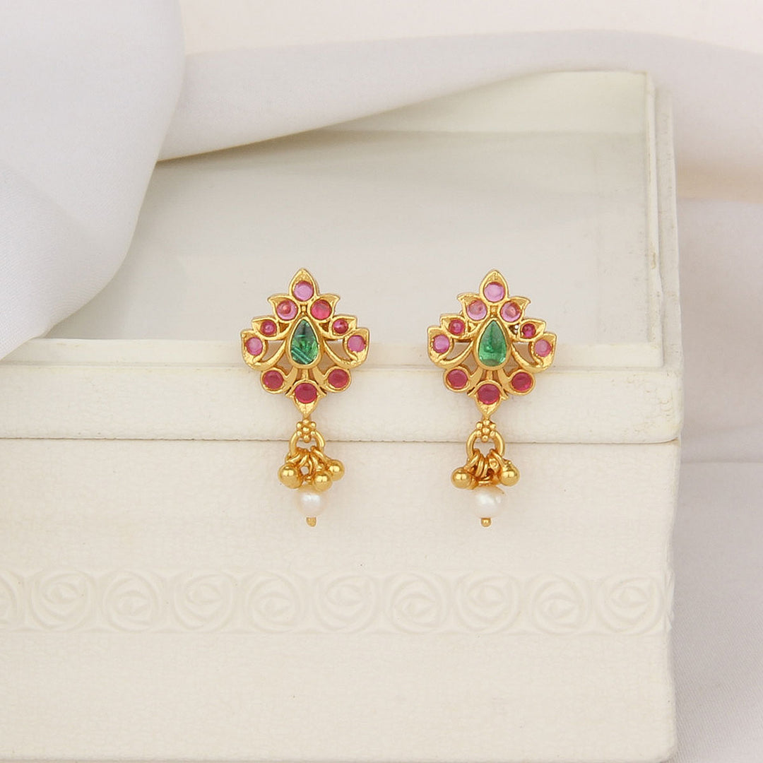 Gold Plated Silver Drop Earrings | Stylish Gold Plated Silver Studs