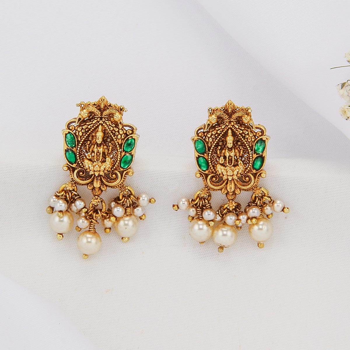 Fabricated from 92.5% sterling silver and 24-karat gold plating, these earrings are adorned with semi-precious stones.