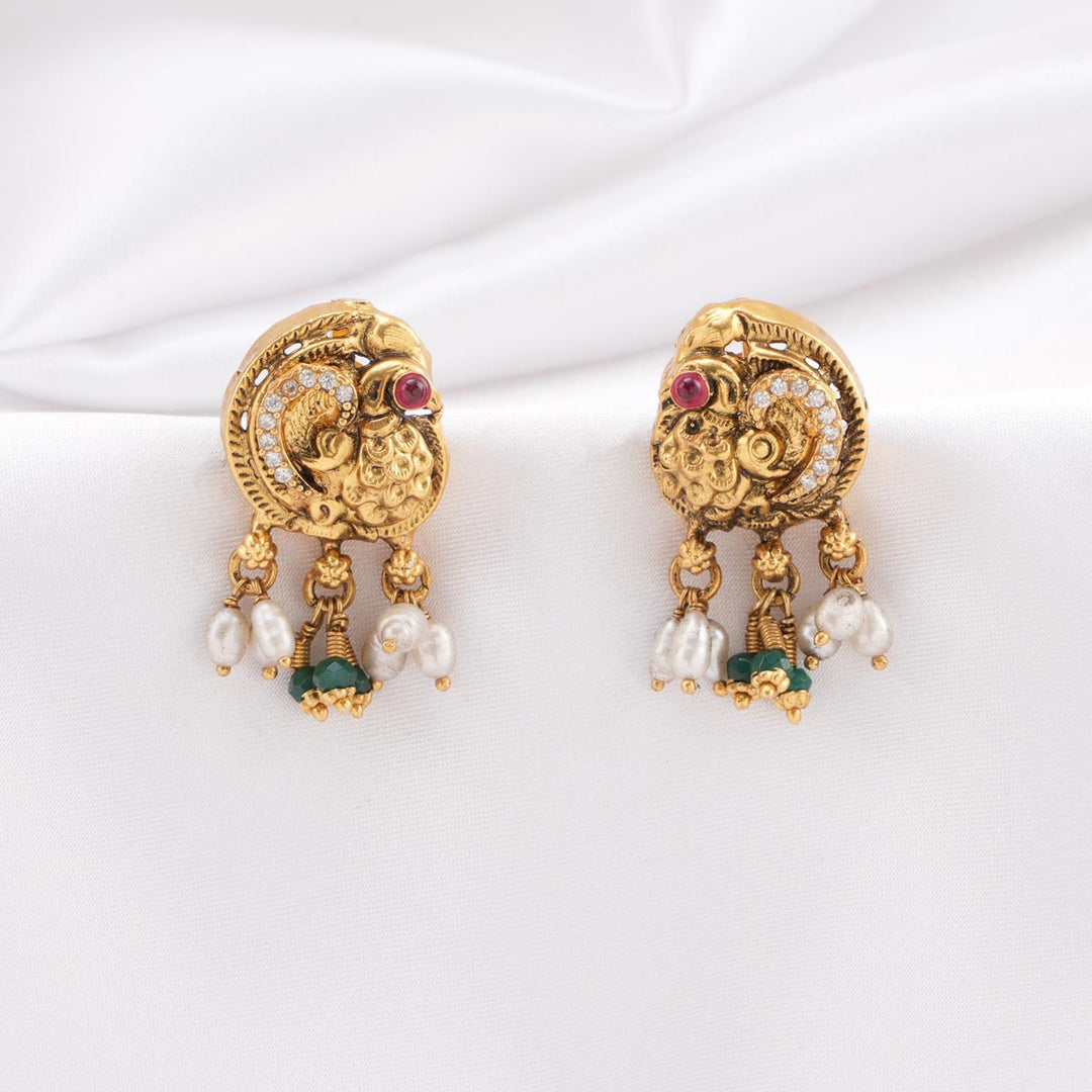 Fabricated from 92.5% sterling silver and 24-karat gold plating, these earrings are adorned with semi-precious stones.