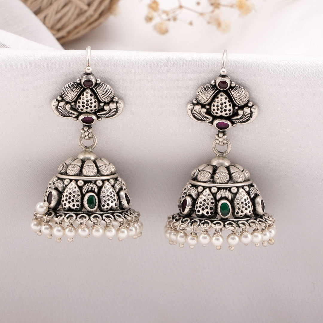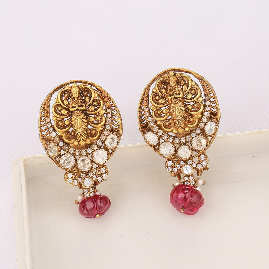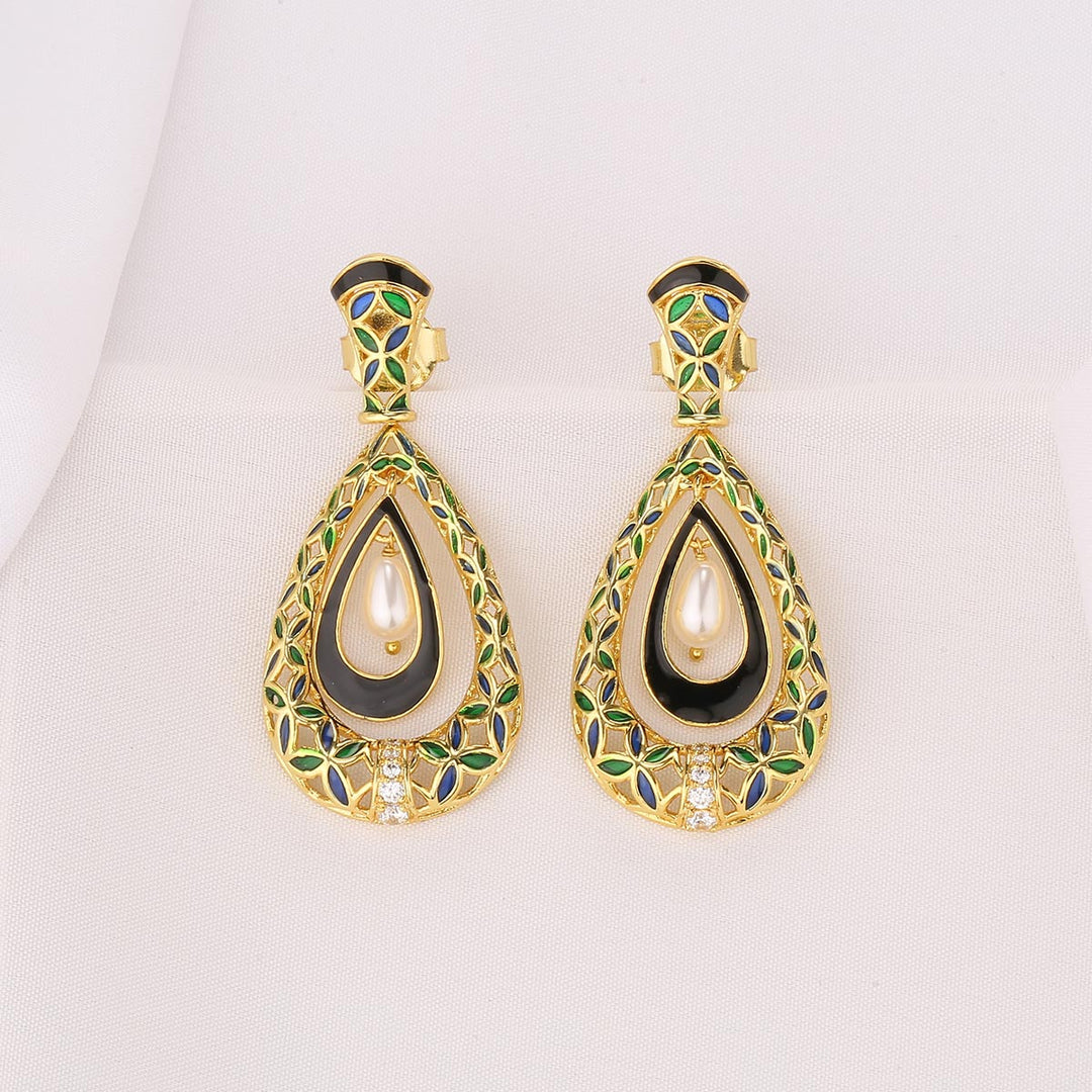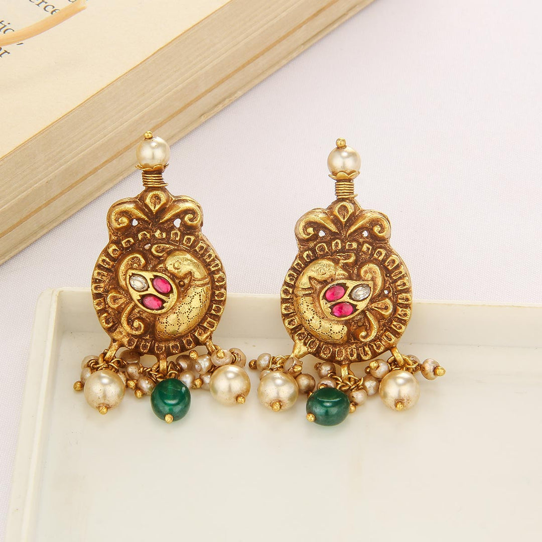 Gold Plated Silver Stone Earrings | Silver Earrings with Gold Plated