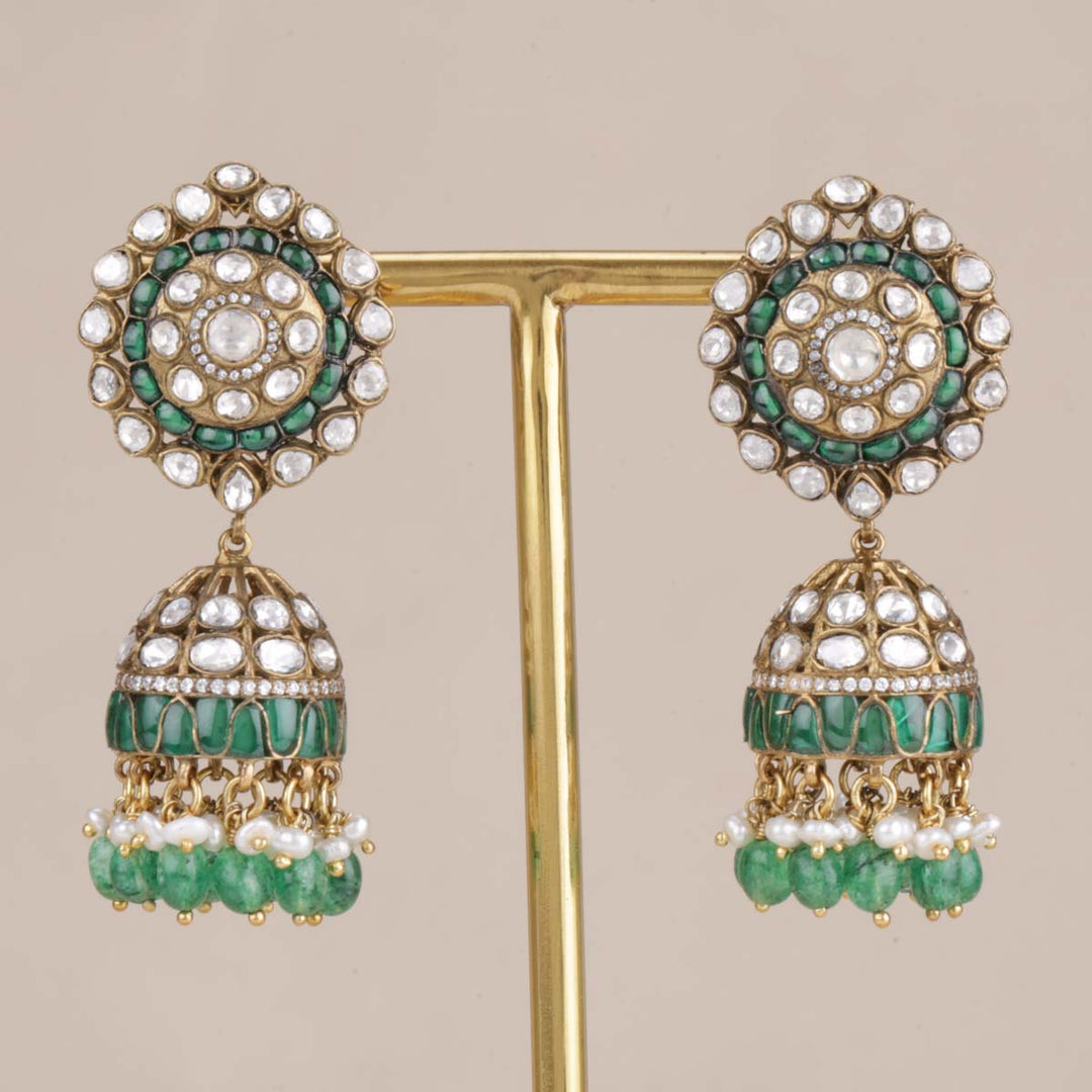 92.5 Silver, Victorian Earring studded with Gem Stones.